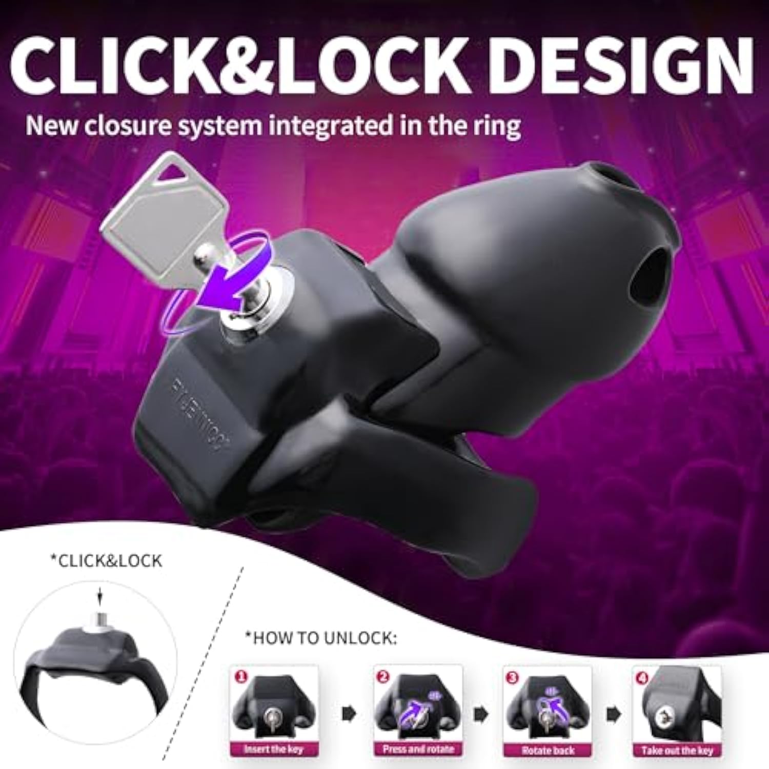 Ht-V5 Male Chastity Cage - Lightweight Resin Male Chastity Cage With Click&Lock Key | Ergonomic Design| Bondage Gear &Adult Sex Toy For Men – Includes 5 Ring Sizes (Black, Maxi)
