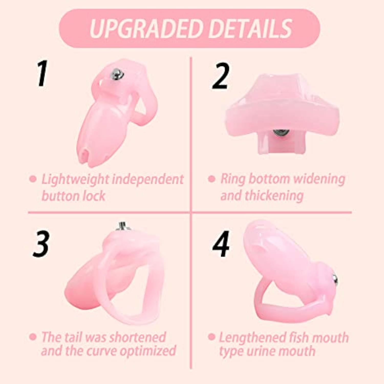 Ht-V5 Male Chastity Device Leightweight Chastity Cage Resin Ergonomic Breathable Chastity Devices With Latest Button Lock And Exclusive Keys Maxi (1.42" Ring(36Mm), Pink)