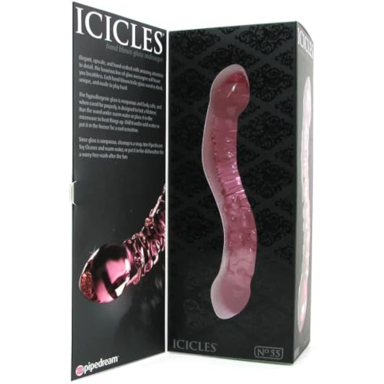 Icicles No 55 Curved Glass Dildo With Lube 1Oz | G-Spot Dildo | Double Ended | Prostate Massager | Glass Sex Toys