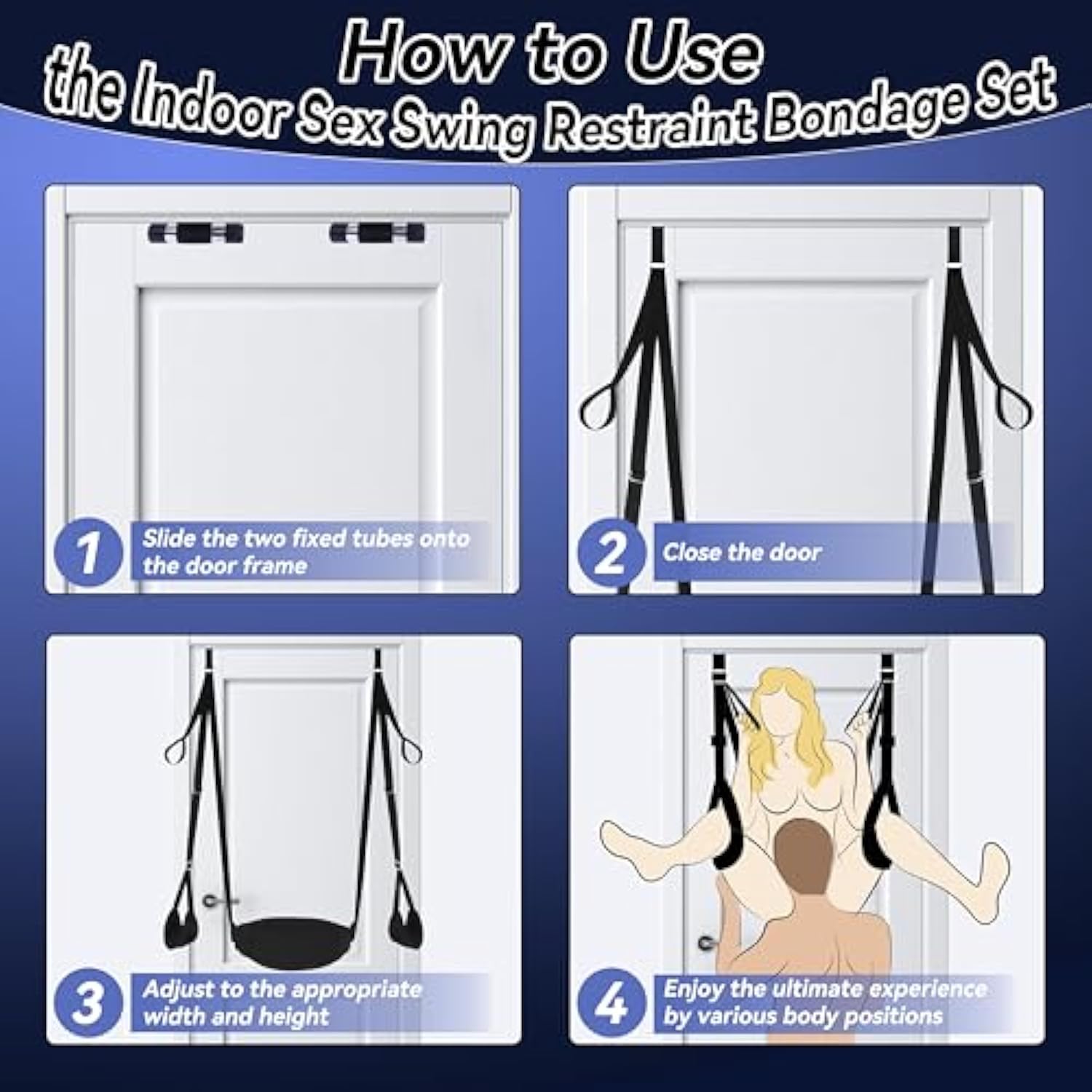 =- With Our High-Quality Indoor Sex Swing, Swing Your Way To Ecstasy. Discover The Hidden Uses For Doors That May Be Converted Into Love Swings With The Aid Of This Bdsm Bondage Constraint Kit. Enjoy The Most Comfortable Postures Your Body Permits By Using