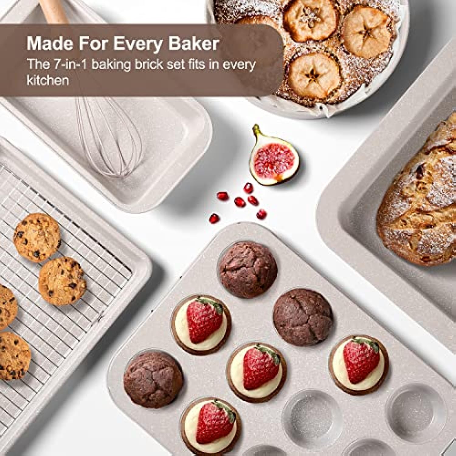 • No Bending or Popping Bakeware Set: - Incredibly durable bakeware; high quality and ultra durable carbon steel is superior to others; resists warping, popping, and bending, even in high temperatures, while helping to maintain even heat distribution for picture perfect results every time. do not use on broil or over an open flame.