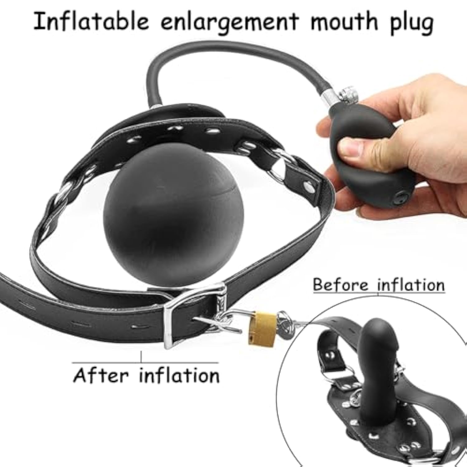 | [Inflatable Gag]: This Gag Can Be Inflated To A Controlled Size To Force The Slave'S Mouth Open And Keep It In Your Preferred Position. Maximum Safe Diameter 9.5Cm, And With Quick Deflation Function | | [Silicone Material Gag]:Made Of Soft Silicone Material, It Has Strong Properties, Brings A Comfortable Feeling And Avoids Harming The Oral Cavity. Suitable For Long-Term Wear. | | [Specialized Prop Used In Sm Games]: Your Husband Or Wife Likes Latex And Would Like To Be Treated As A Slave Give Her A Surprise!This Sexy Toy Can Enjoy The Mysterious Sm Game With Your Sexual Partner. Unleash Your Bounded Wildness And Stimulate Your Desires. | | [Adjustable Real Leather Strap]: The Leather Strap Uses A Multi-Hole Buckle Design, Which Can Be Adjusted To Fit The Skin Perfectly.And It Comes With A Metal Lock, So She Can'T Remove The Gag Without Your Permission, Enjoy The Desire To Control | | [Discreet Packageing After-Service]: We Understand The Importance Of Privacy, Which Is Why Our Product Come In A Discreet Package, Ensuring Your Purchase Remains Confidential. The Words Dildo Gag, Inflatable Gag, Bondage Gag, Bondage Hood, Etc. Will Not Appear On The Packaging. If You Have Any Questions About The Product, Please Feel Free To Email Us And We Will Definitely Give You A Satisfactory Answer. | |