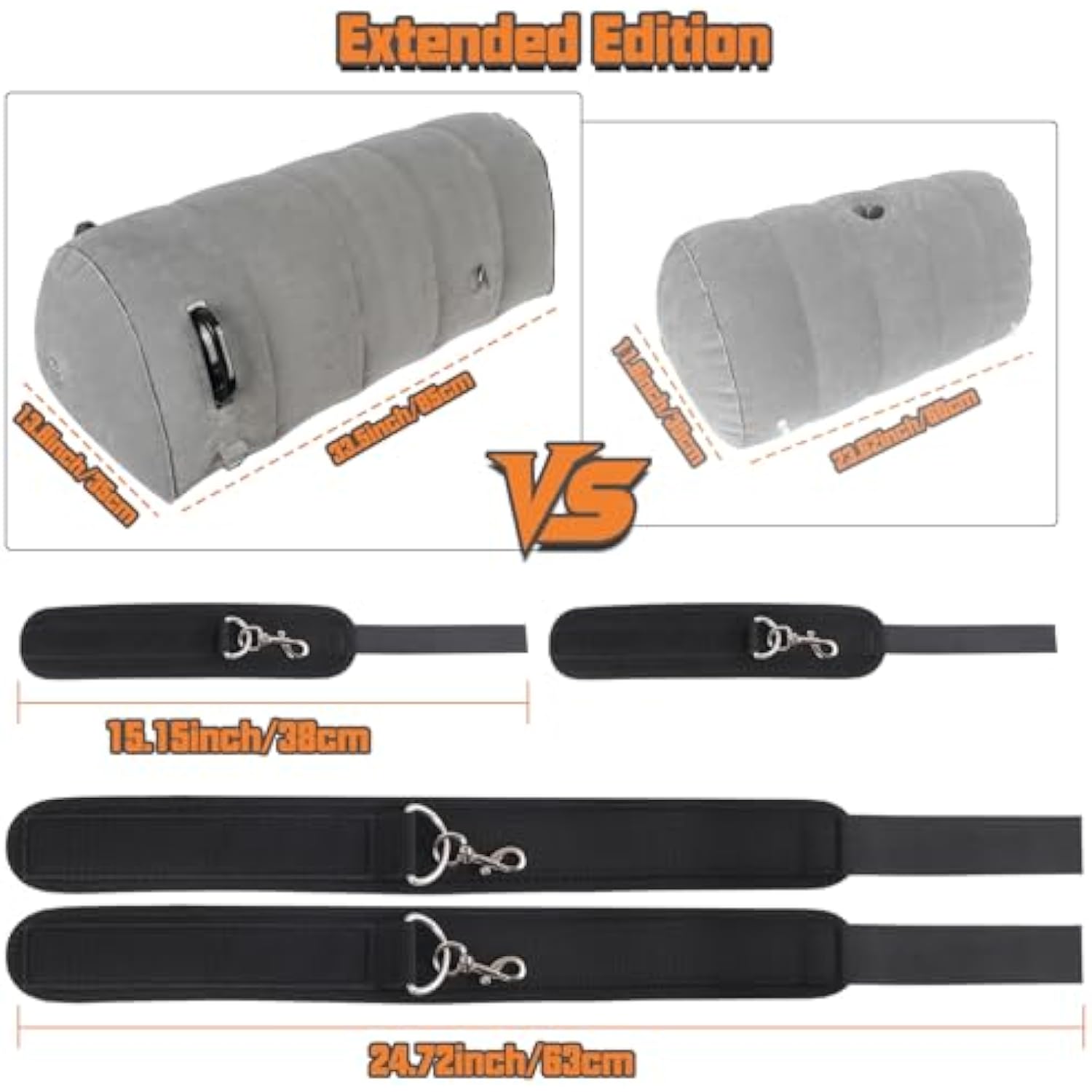 Inflatable Sex Toy Pillow With Bdsm Bondage - Adjustable Restraints Extra-Long Pillow Cushion For Couples, Includes 4 Cuffs For Kinky Sex Positions, Portable Sex Furniture For Bedroom & Outdoor Use