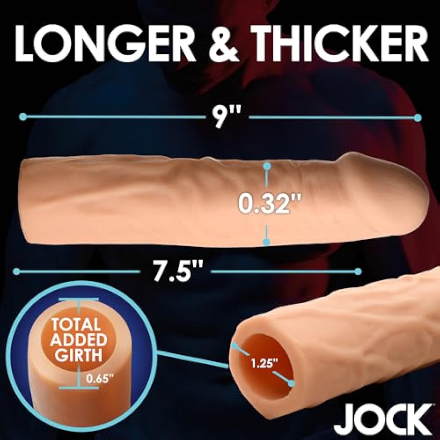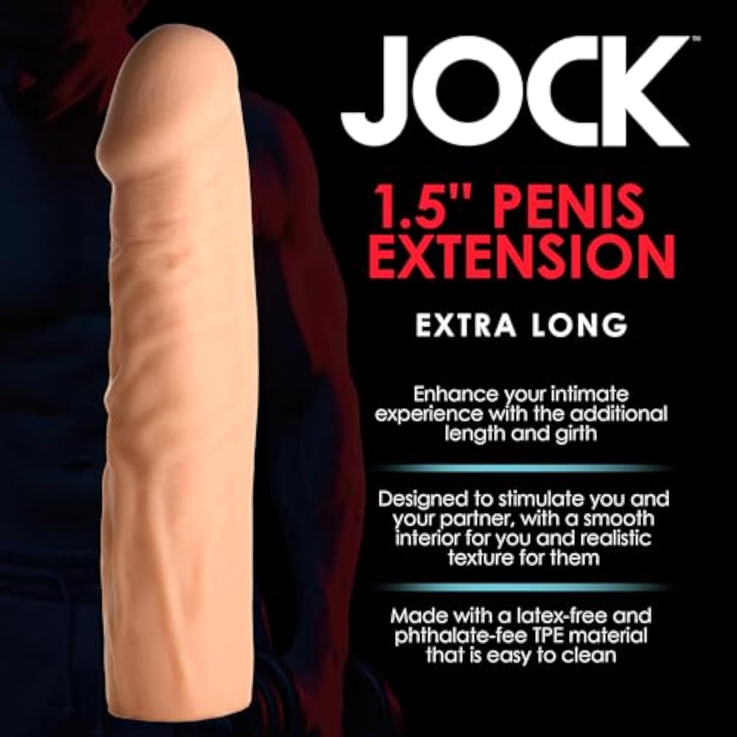 Jock Extra Long 1.5" Penis Extension Sleeve For Men & Couples. Gain Size In Seconds! Realistic Feel With Textured Sheath, Smooth And Snug Wear, Custom Length. Body-Safe Tpe. 1 Piece, Light