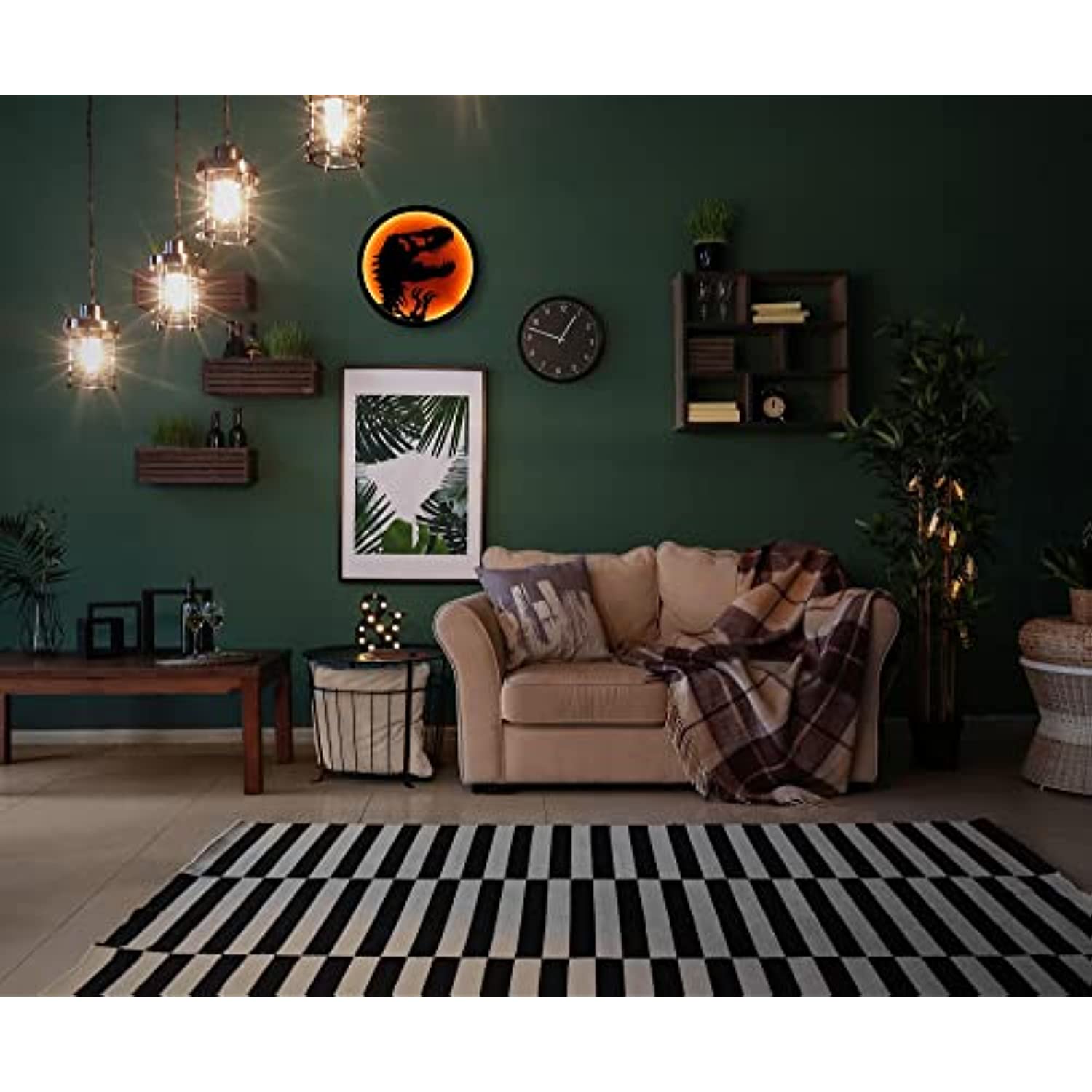 - Dino Room Essentials: This decorative LED wall light features the classic Jurassic Park logo of the t-rex skeleton silhouette. Immerse yourself in all things prehistoric with this impressive wall decor.
