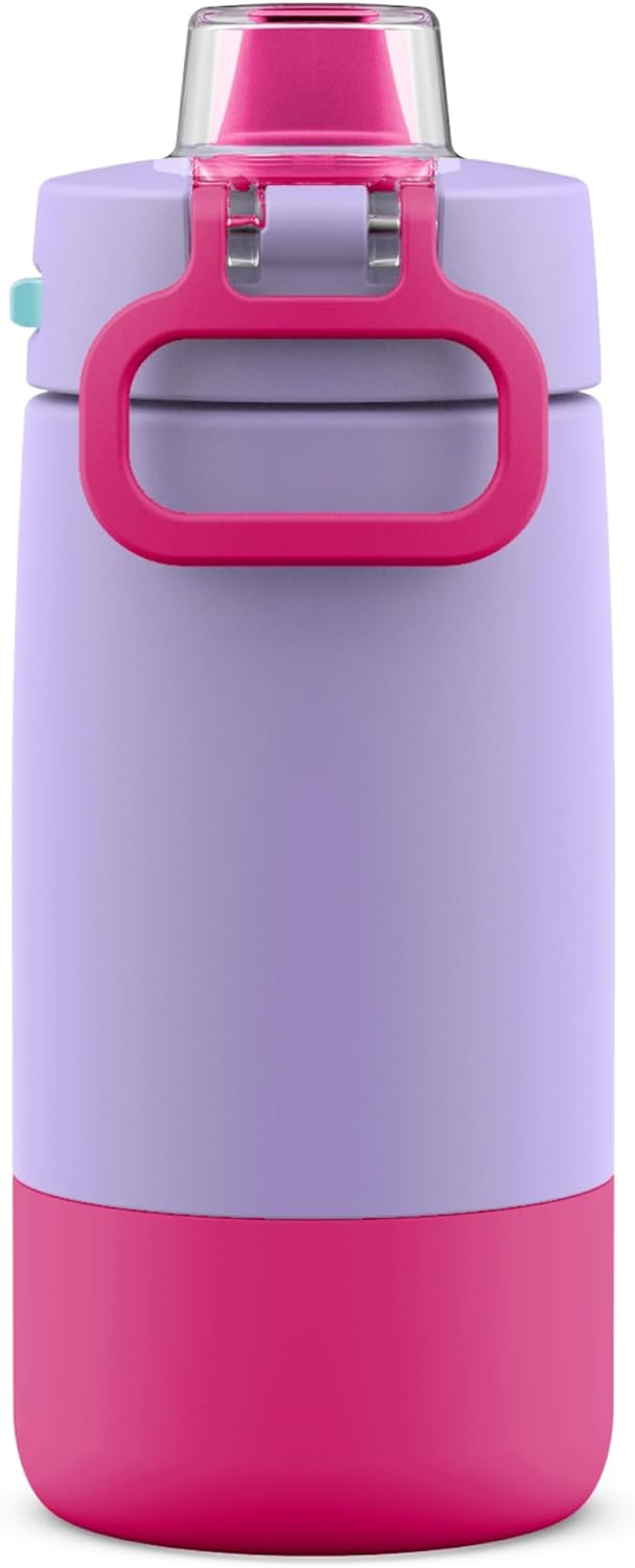 Kids Colby 12oz Stainless Steel Insulated Water Bottle with Straw and Built-In Silicone Coaster Carrying Handle and Leak-Proof Locking Lid for School Backpack, Lunchbox, and Outdoor Sports