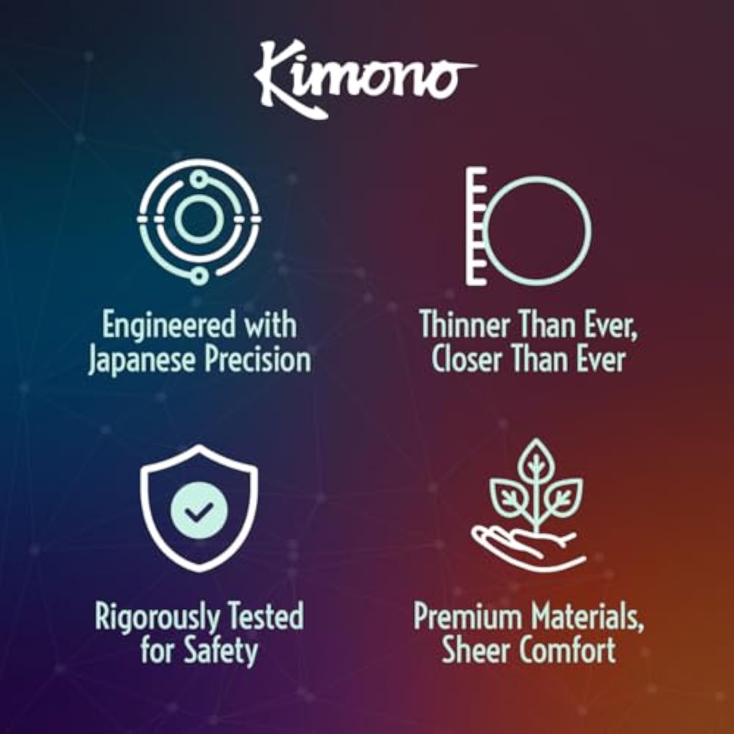| Stimulating Texture: Designed with a unique form-fit shape featuring rows of ribs and hundreds of Sensi-Dots. This innovative design ensures maximum sensitivity and an array of new sensations, tailored to elevate her experience. Made in Japan. | | Ultimate Design: Specially crafted with ribs and dots for her experience. The meticulous design offers a stimulating texture that enhances intimacy, ensuring a deeper connection and unforgettable moments. | | Japanese-engineered: Kimono ultra-thin sensational condoms offer unmatched strength and reliability. With science and engineering at its core, they're tested 5X for durability, surpassing US standards, ensuring peace of mind with every use. | | Premium Vegan Material: Crafted from premium latex without the unpleasant latex odor. Free from parabens, glycerin, spermicide, and nitrosamines. Certified to MDSAP and ISO International Quality Standards and FDA and Health Canada Requirements. | | Kimono By Mayer Labs: With over 35 years of expert research, premium ingredients, and a focus on enhancing every intimate moment with science-backed innovations. | |