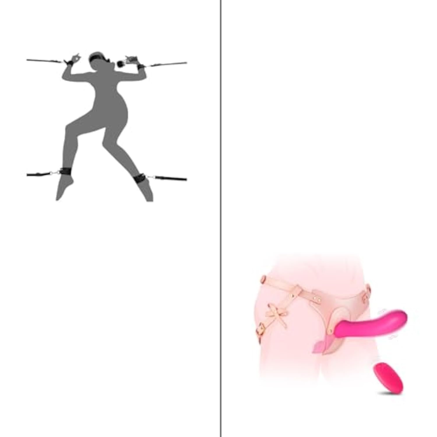 King Size Bed Bondage & Strap-On Vibrating Dildo Sex Toys
