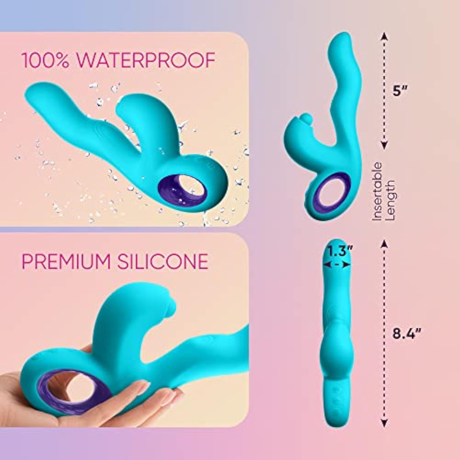 Klio Triple Action Thumping Rabbit Vibrator Sex Toy For Women - Super Soft, 100% Waterproof, G Spot Vibrator Adult Toy With 5 Internal & 3 External Thumping Speeds & 10 Vibration Modes (Turquoise)