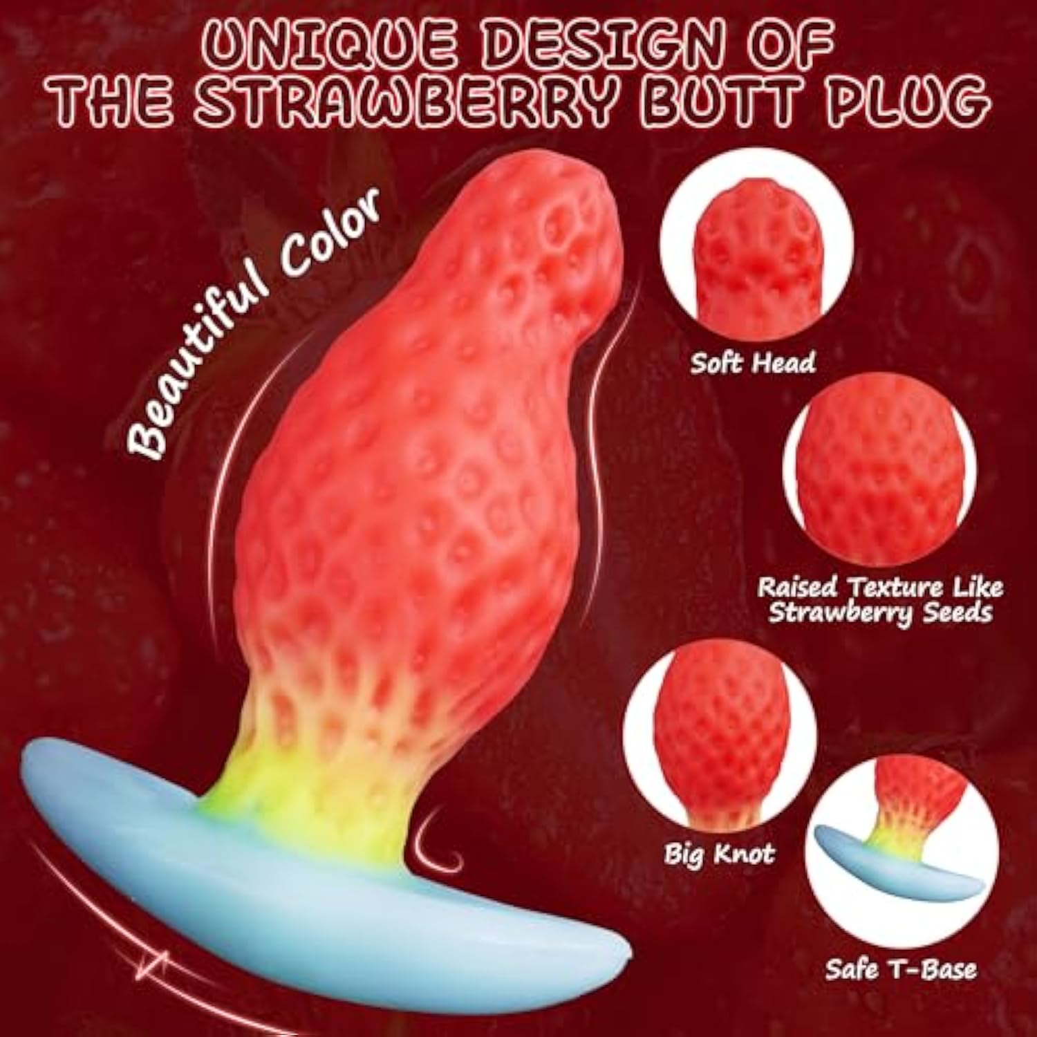 | Your Fantasy Anal Plug: Our Silicone Butt Plug Is Inspired Of The Outlook Of Strawberry With A Soft Head. It Covered With Strawberry Seeds On Surface For A Realistic Experience And Friction Stimulation. The Anal Stetcher Is Try To Fulfill Your Sexual Fantasies While Providing A Lifelike Experience. | | Body-Safe Big Butt Plug: The T-Shaped Base Design Keeps The Buttplug Securely Outside The Body, Reducing The Risk Of Slipping Or Falling Out Of Your Body. Anal Dilator Can Also Be Worn As A Wearable Dildo In Public, Providing A Thrilling And Exciting Experience. | | More Ways To Have Fun With This Anal Tranier: The Anal Toy Is Designed For Both Vaginal And Anal Usage. This Huge Butt Plug Is Suitable For Both Men And Women. As An Anal Dildo For Women, The Soft Head With The Bumps On The Surface Can Gently Licks Your Sensitive Areas. As An Anal Plug, Its Curved Shape Effectively Stimulates The Prostate. | | Soft Silicone Butt Plug: This Silicone Thick Butt Plug Is Soft, Flexible And Safe To Use. It Make Anal Plugs Ideal For Anal Training. The Safe Silicone Material Allows You To Safely Use The Butt Plug In The Vagina, Anus, And Other Parts Of The Body. And The Anal Stretcher Is 100% Water Proof. | | Enhance Your Experience: We Ensure Your Privacy With Discreet Packaging For All Our Anal Sex Toys. For Any Pre-Sales Or After-Sales Inquiries, Please Give Us Feedback. We’Ll Respond Within Twenty Four Hours With A Satisfactory Answer. | | Note: Due To The Unique Nature Of Artist'S Handmade, Variations In Color May Occur In The Product, With Potential Differences Of 0.2 Inches In Size, And 10% Error In The Total Product Weight. | | For Adults Only: This Anal Plug Is For Adults Only. | |