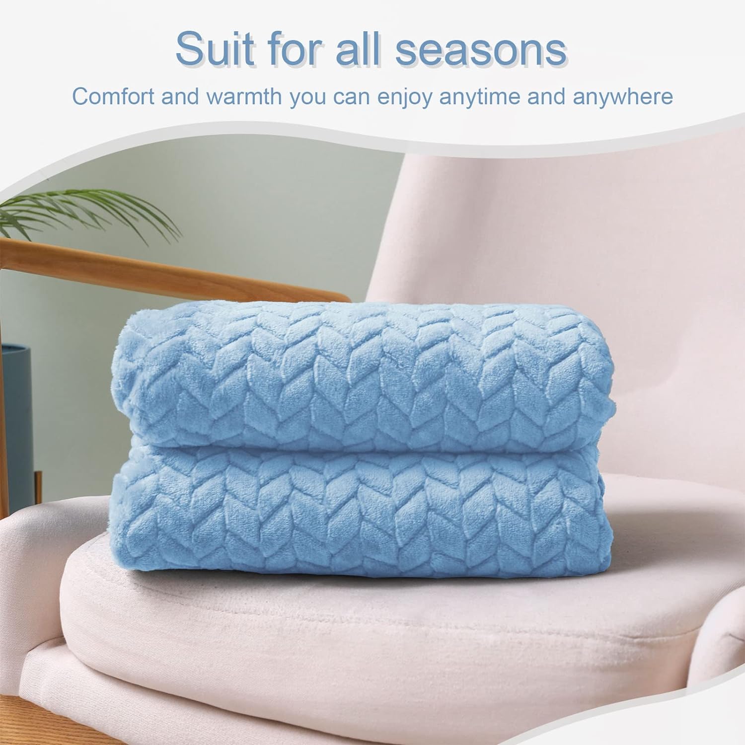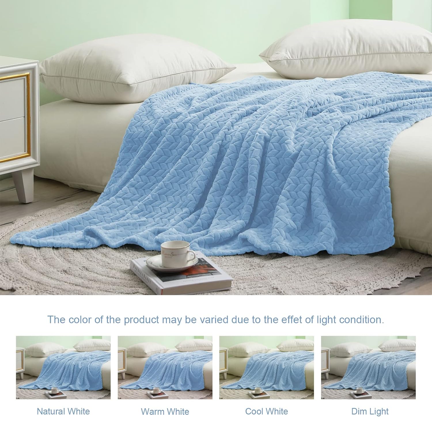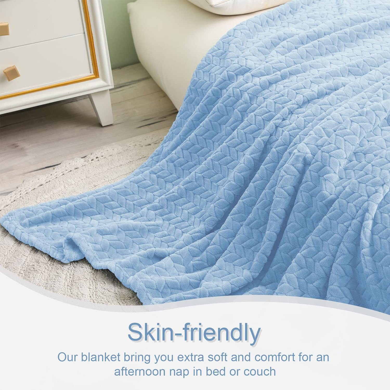 Large Flannel Fleece Throw Blanket, 50X70 Inches Soft Jacquard Weave Leaves Pattern Blanket For Couch, Cozy, Warm, Lightweight And Decorative Baby Blue Blanket