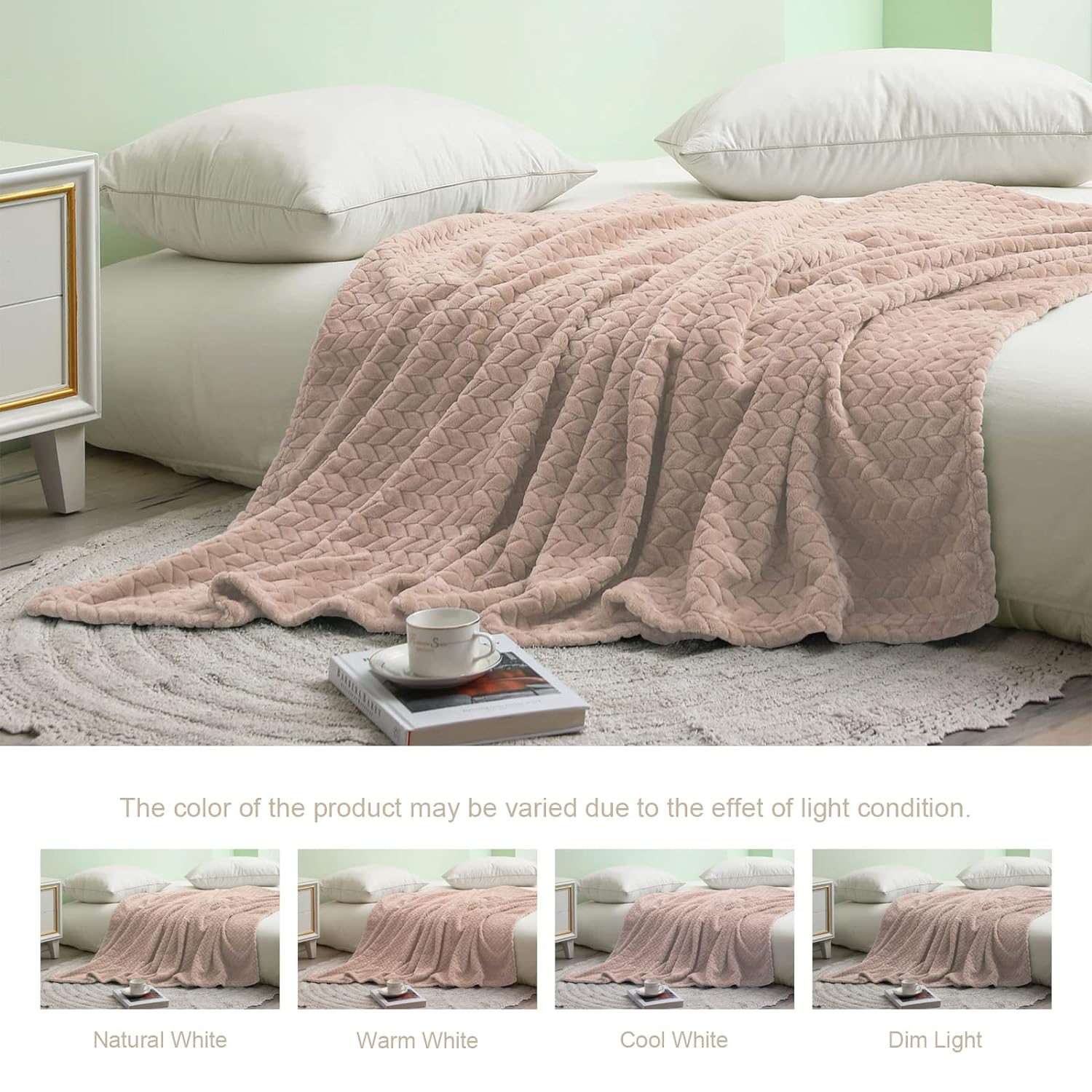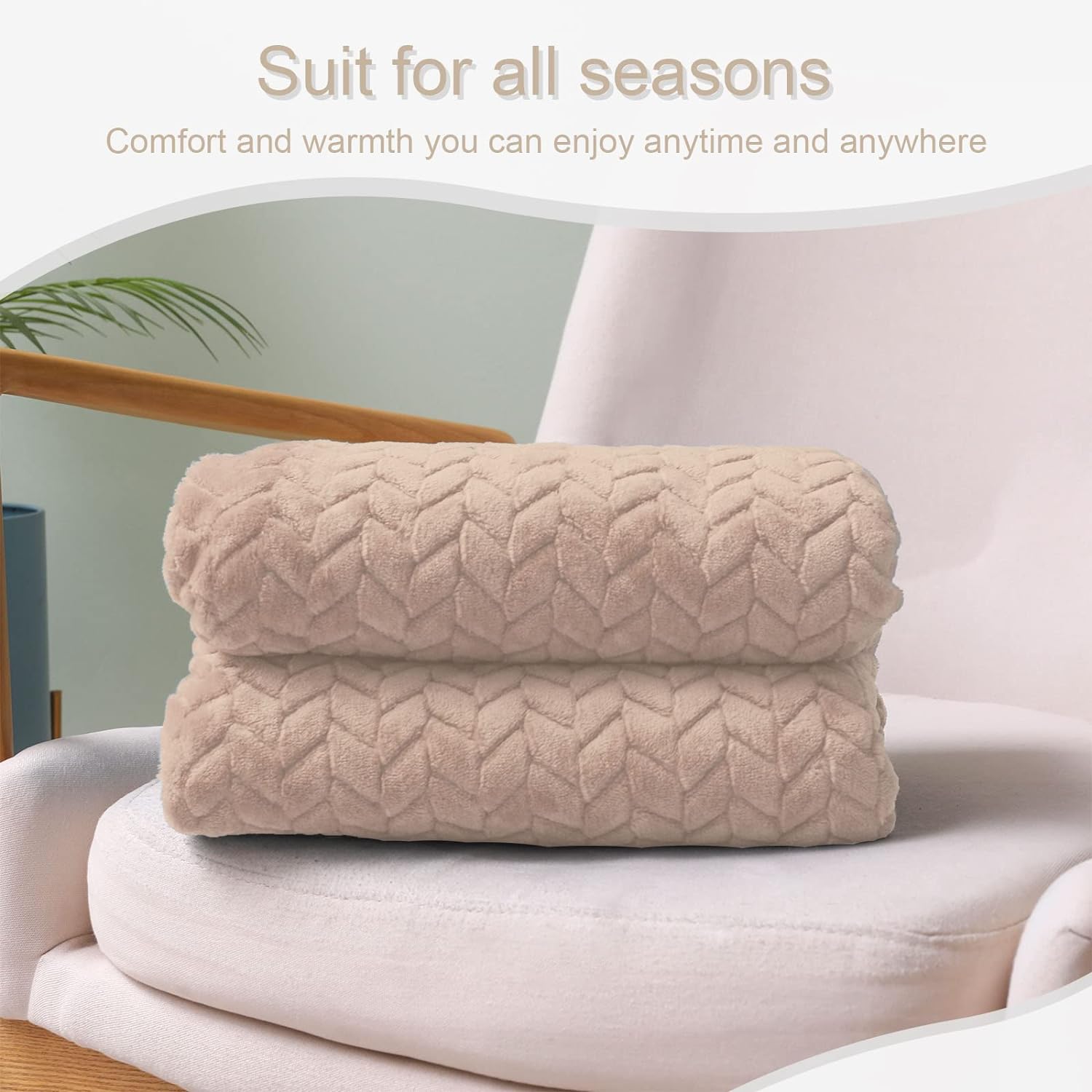 Large Flannel Fleece Throw Blanket, 50X70 Inches Soft Jacquard Weave Leaves Pattern Blanket For Couch, Cozy, Warm, Lightweight And Decorative Camel Blanket