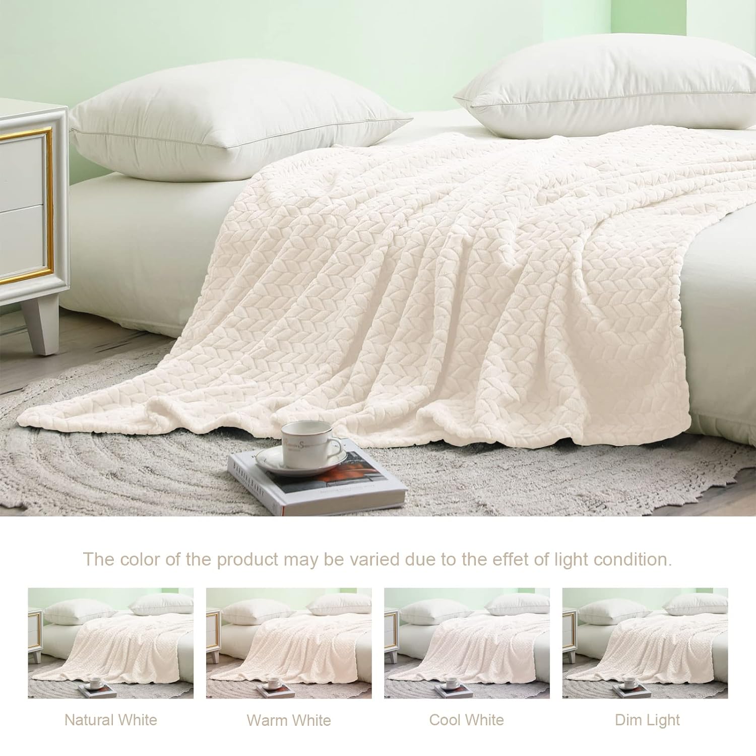 Large Flannel Fleece Throw Blanket, 50X70 Inches Soft Jacquard Weave Leaves Pattern Blanket For Couch, Cozy, Warm, Lightweight And Decorative Ivory Blanket