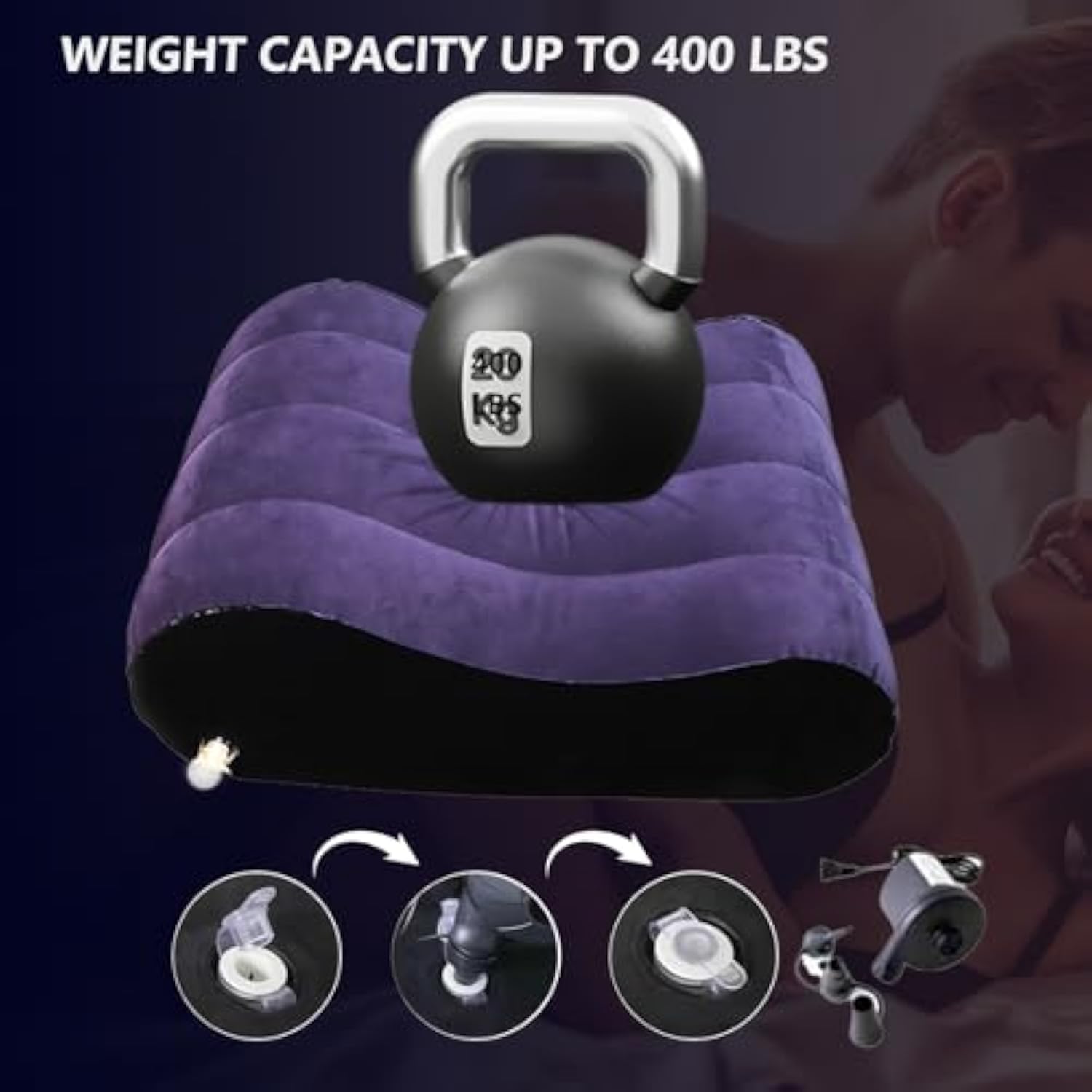 | Perfect Body Support: This Upgraded Extra-Wide Design Offers Maximum Support – The Sex Sofa Measures 31.5 Inches In Length, 19.69 Inches In Width, And 11.81 Inches In Height, Providing Optimal Support For You And Your Partner. Supports Up To 400 Lbs. | | Luxurious Velvet Surface: This Sex Pillow Features A Velvet-Like Flocked Surface That Prevents Slipping During Movement. The Soft, Velvety Material Provides Comfort, Ensuring You Feel At Ease No Matter The Angle. It’S The Perfect Accessory To Enhance Your Intimate Moments. | | High-Quality, Durable, And Wear-Resistant: This Product Serves Not Only As A Sex Toy But Also As A Nap Sofa. Made With Thick, Durable Materials And An Upgraded Air-Tight Valve, It Firmly Supports Up To 400 Lbs Without Collapsing. The Air-Tight Valve Allows For Easy Inflation And Deflation. It'S Foldable For Convenient Portability, Making It Perfect For Use At Home, Outdoors, At Parties, Or On Trips, Adding Fun Wherever You Go. | | Enhance Your Intimate Life: The S-Curve Arch Design Allows You And Your Partner To Explore Various New Positions That Are Both Exciting And Enhance Sensation. The High And Low Curves Naturally Fit Your Body’S Contours, Reducing Strain On Your Knees, Joints, And Muscles. By Elevating Your Body And Hips, It Provides Just The Right Amount Of Lift And Access For Deeper Penetration And More Pleasure. | | Discreet Packaging Easy To Clean: The Sex Pillow Comes In Discreet Packaging, So No One Will Know Your Secret. After Use, Simply Wipe The Surface With Water And Store It Properly. Let This Product Help You Achieve Endless Positions And Explore Your Deepest Fantasies. | |