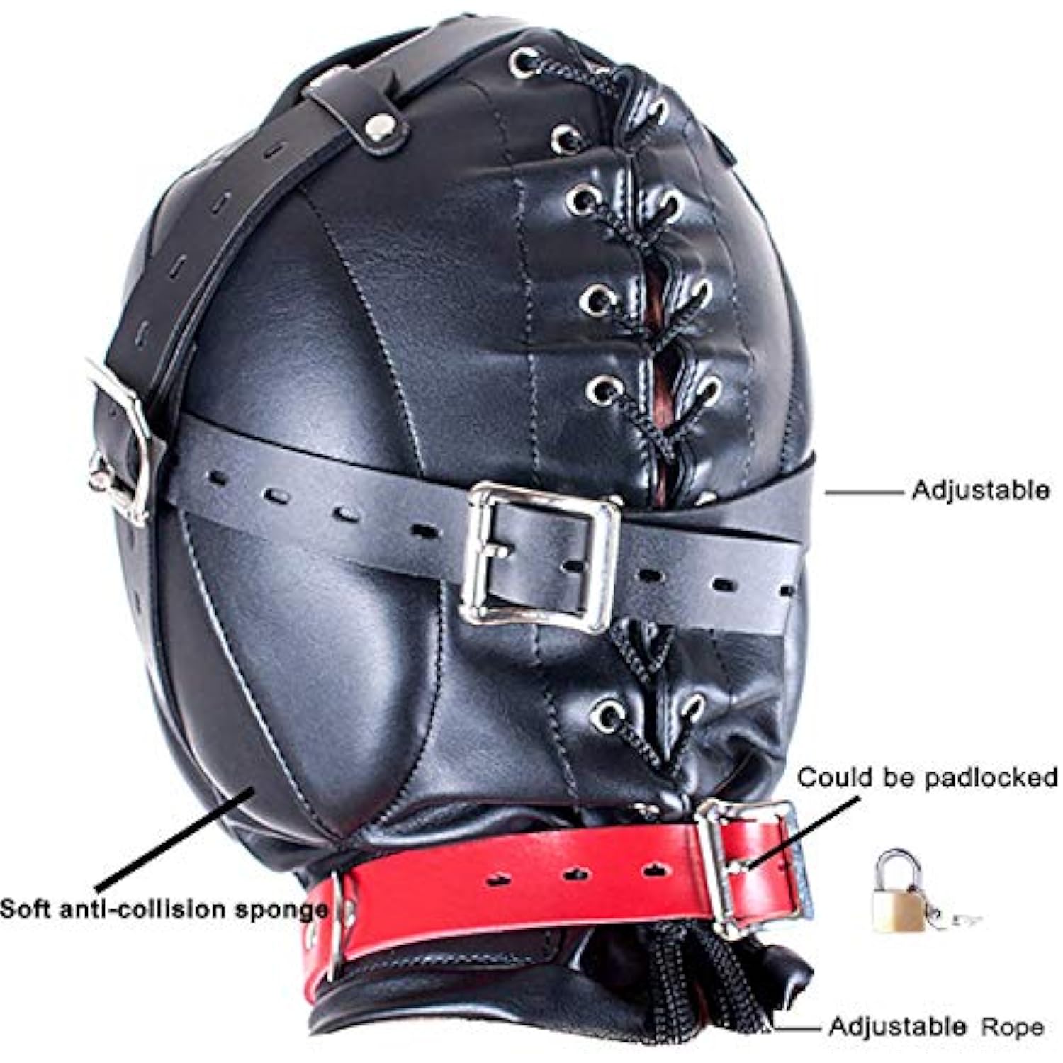 - ? Pu Leather Head Hood - Lace-Up Leather Hood Binder,Adjust Straps Don'T Worry Too Big