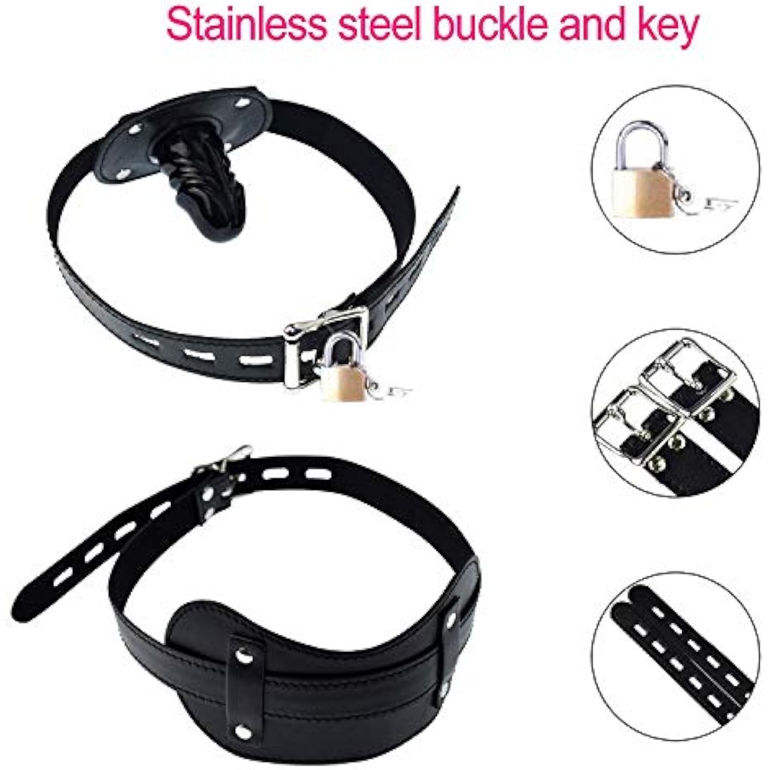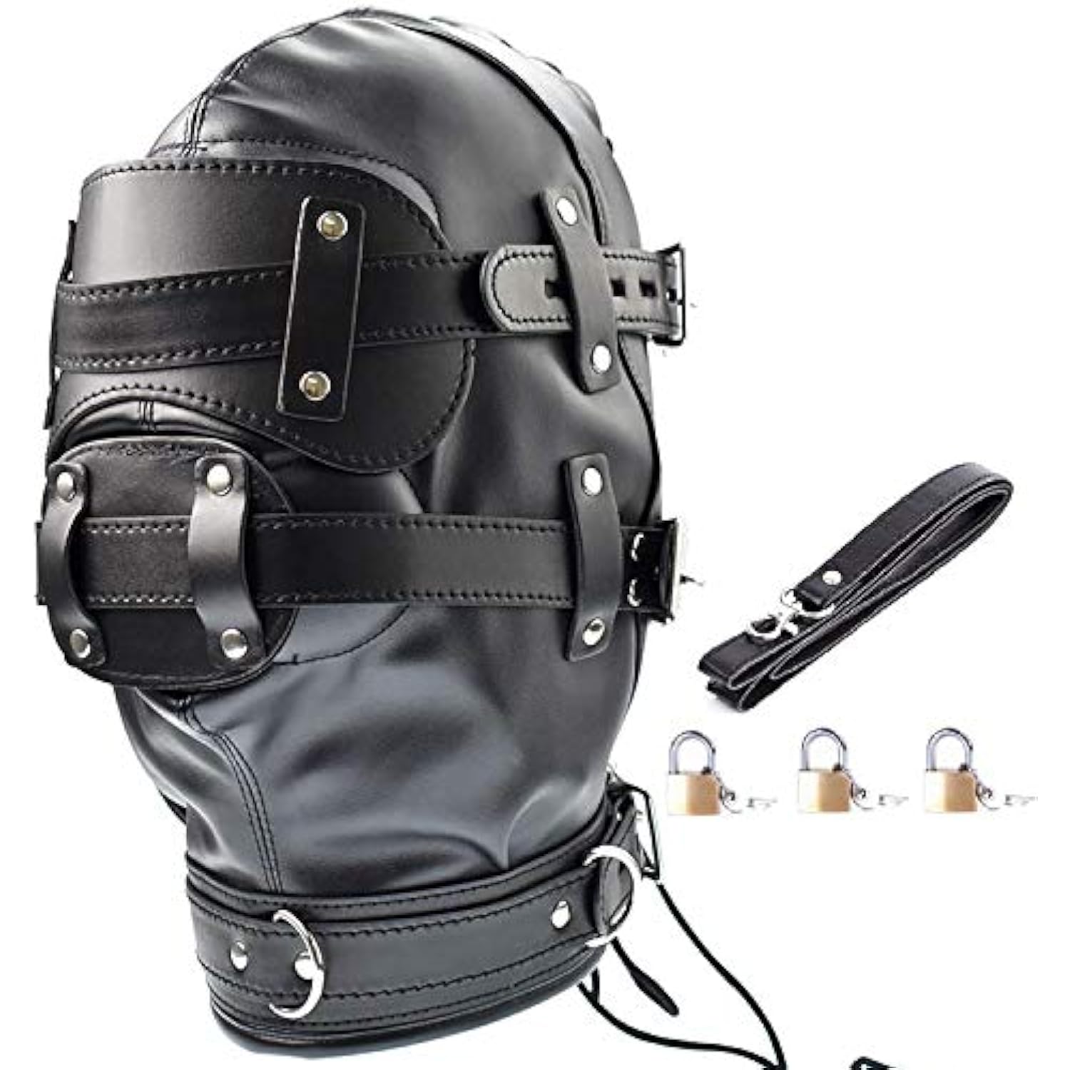 Leather Bondage Gimp Mask Hood, Full Face Blindfold Mask Hood Lockable & Dildo Penis Mouth Gag Breathable Restraint Head Hood, For Unisex Adults Couples, Bdsm/Lgbt Fetish Hood Black