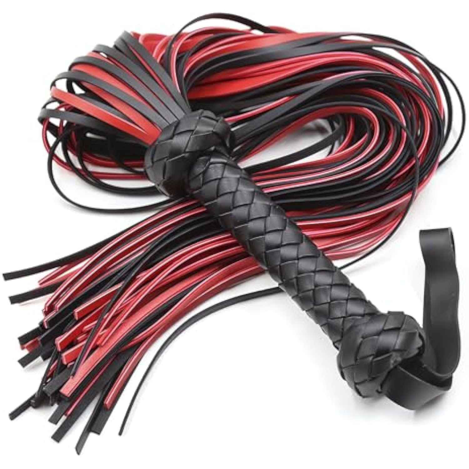 Leather Sex Flogger Bdsm Spanking Whips Tease Ticklers With Non-Slip Woven Handle Long Tassel Flirting Fantasy Cosplay Sm Adult Sex Toys (Red Black)