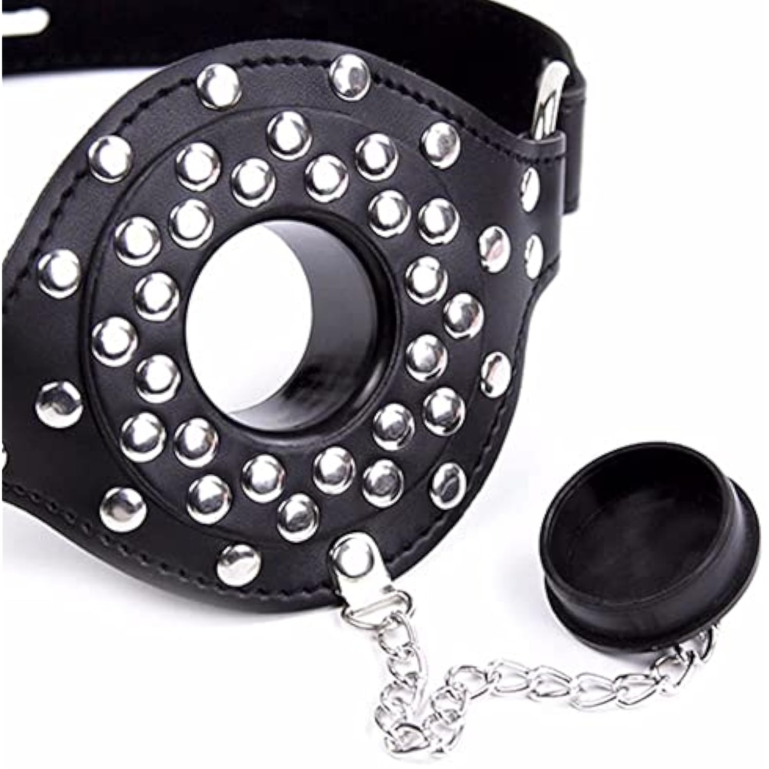 Leather Studded Stoppable Gag - Control & Experimentation | Adjustable Strap | Bdsm Accessory | Bondage Control & Pleasure | Feeding Fantasies | Kinky Play | Perfect Fit