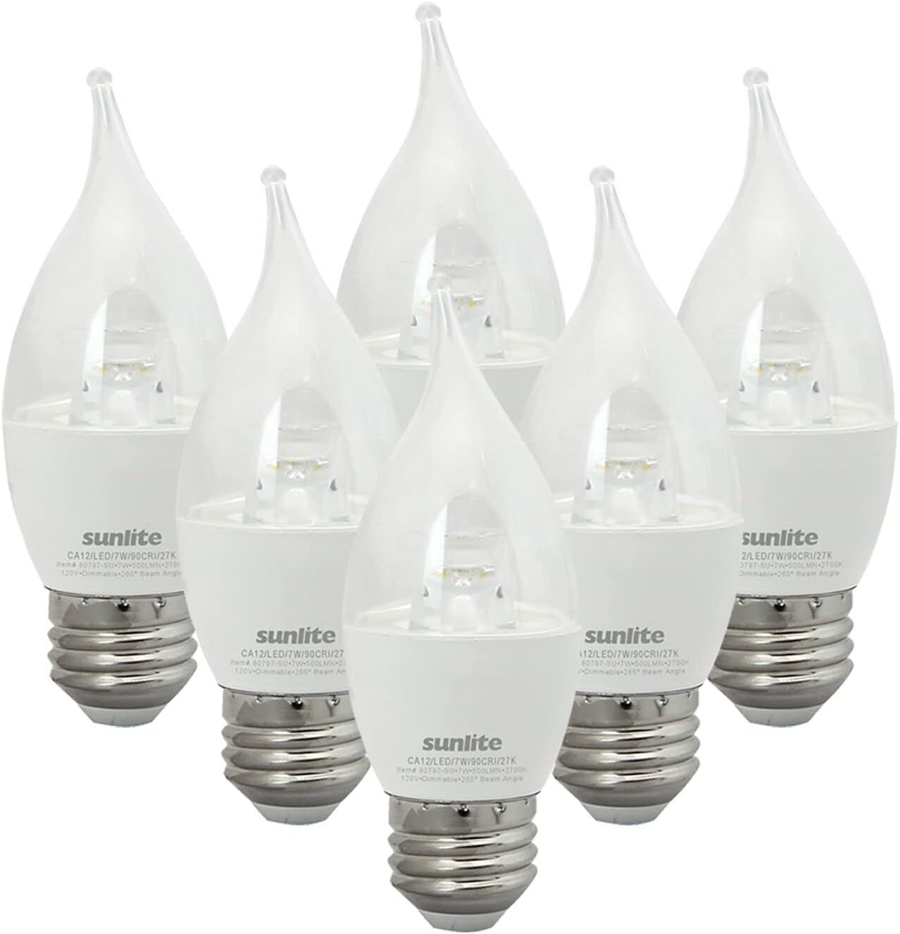LED CA12 Clear Chandelier Light Bulb 7W(60W=) E26 Base 2700K Soft White - 6 Pack
