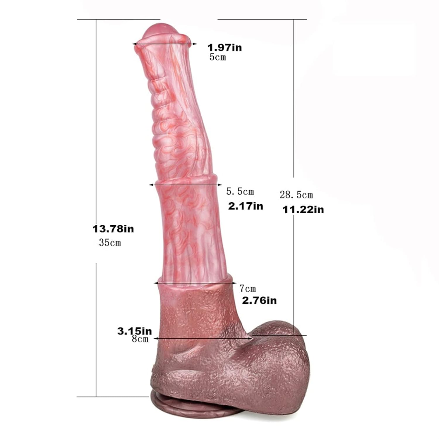 - Horse Giant Dildo Size: 13.78*1.97inch/35*5cm, without suction cup length: 11.22inch/28.5cm.