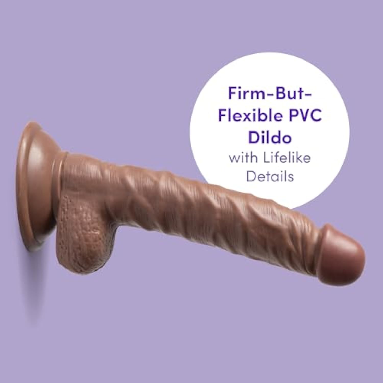 Lifelike Lover Realistic Dildo - 8 Inch Suction Cup Dildo For Women - Flexible & Big With Balls - Harness Compatible Strap On - Adult Sex Toy - Flesh Brown