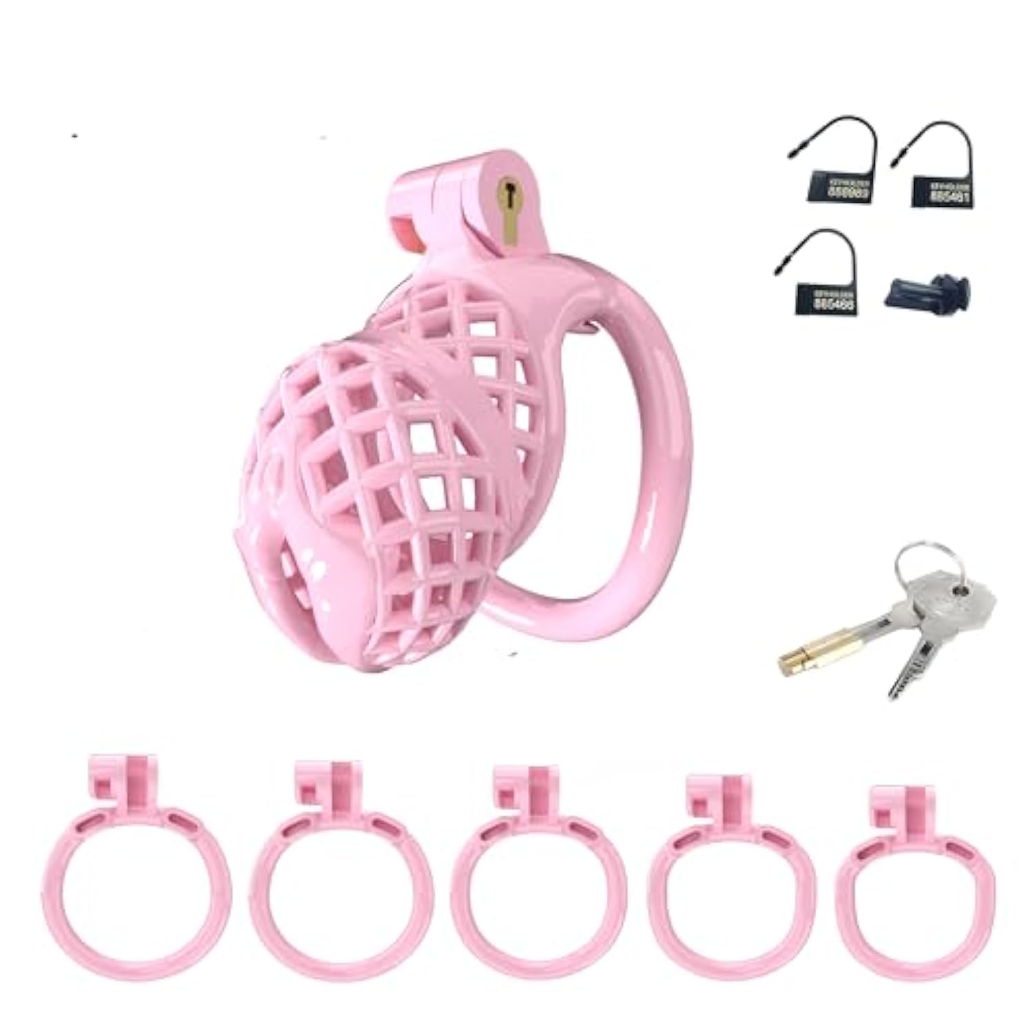 | Package Includes: 1 Cage, 5 Rings, 1Pair Of Key ,1 Lock Cylinder. | | The Product Is Made Of Nylon Resin, Which Is Safe And Non-Toxic. | | Diameters Available Of 5Rings:43Mm (1.89Inch), 46Mm (1.89Inch), 49Mm (1.89Inch),51Mm (2.01Inch) ,55Mm?2.16Inch?. | | Inside Diameter Of The Tube : 34Mm (1.34Inch) . | | All Items Are Privately Packaged And Shipped Discreetly. | |