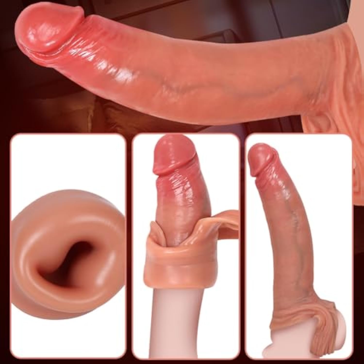 - Unique Design: Our Realistic Penis Sleeve Features An Elastic Ball Stretcher Penis Ring At The End. This Design Ensures A Secure And Comfortable Fit, It Wraps Around Your Balls For Extra Stimulation And To Keep You Securely Inside The Penis Enlargement!