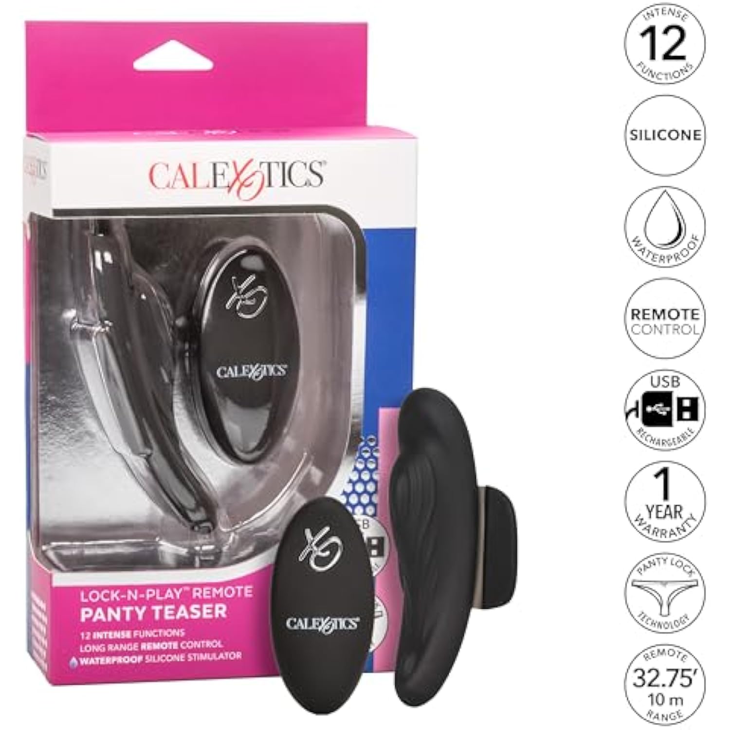 Lock-N-Play Remote Panty Teaser, Rechargeable 12-Function Waterproof Silicone Clitoral Vibrator Securely Attached On Panty Black Se-0077-60-3