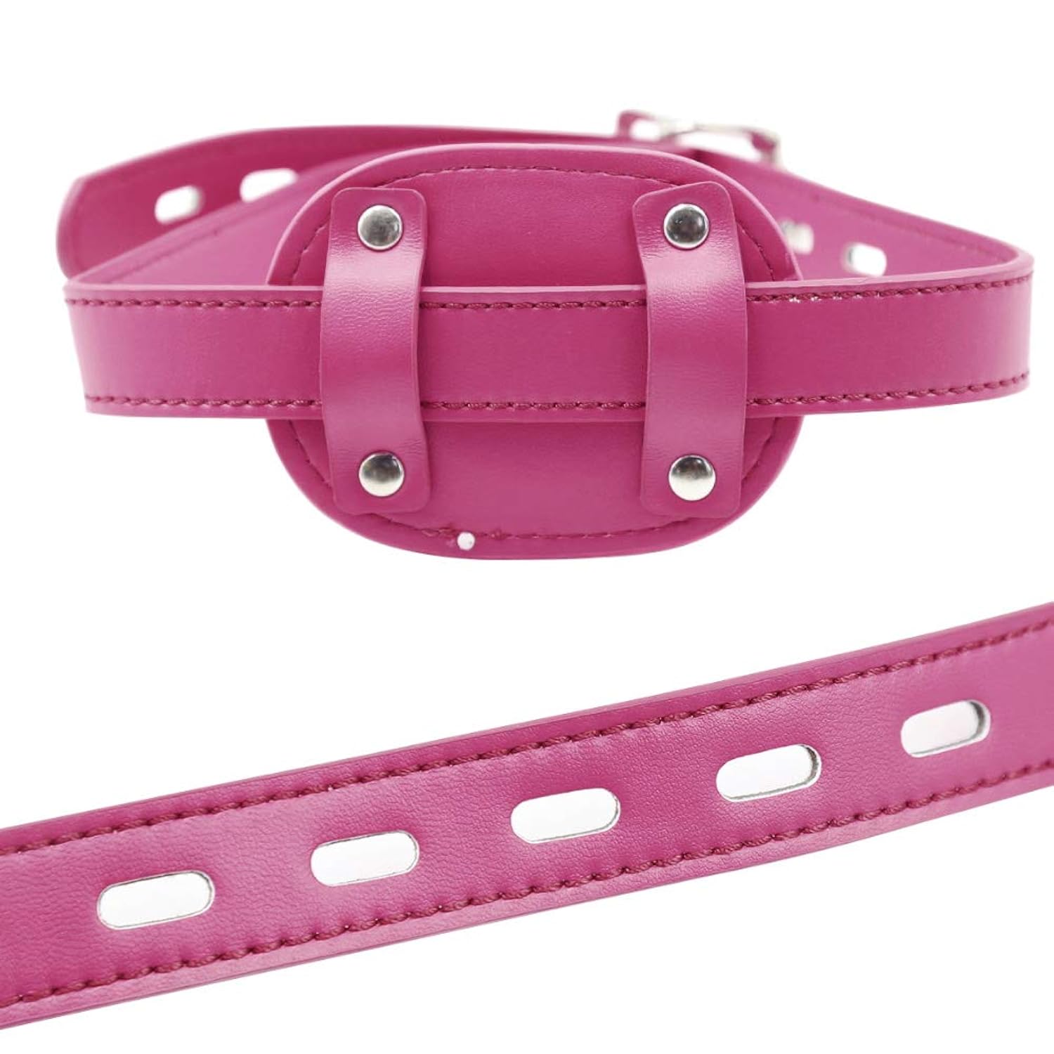 Lockable Dildo Mouth Gag with Adjustable Leather Strap, Rose Red