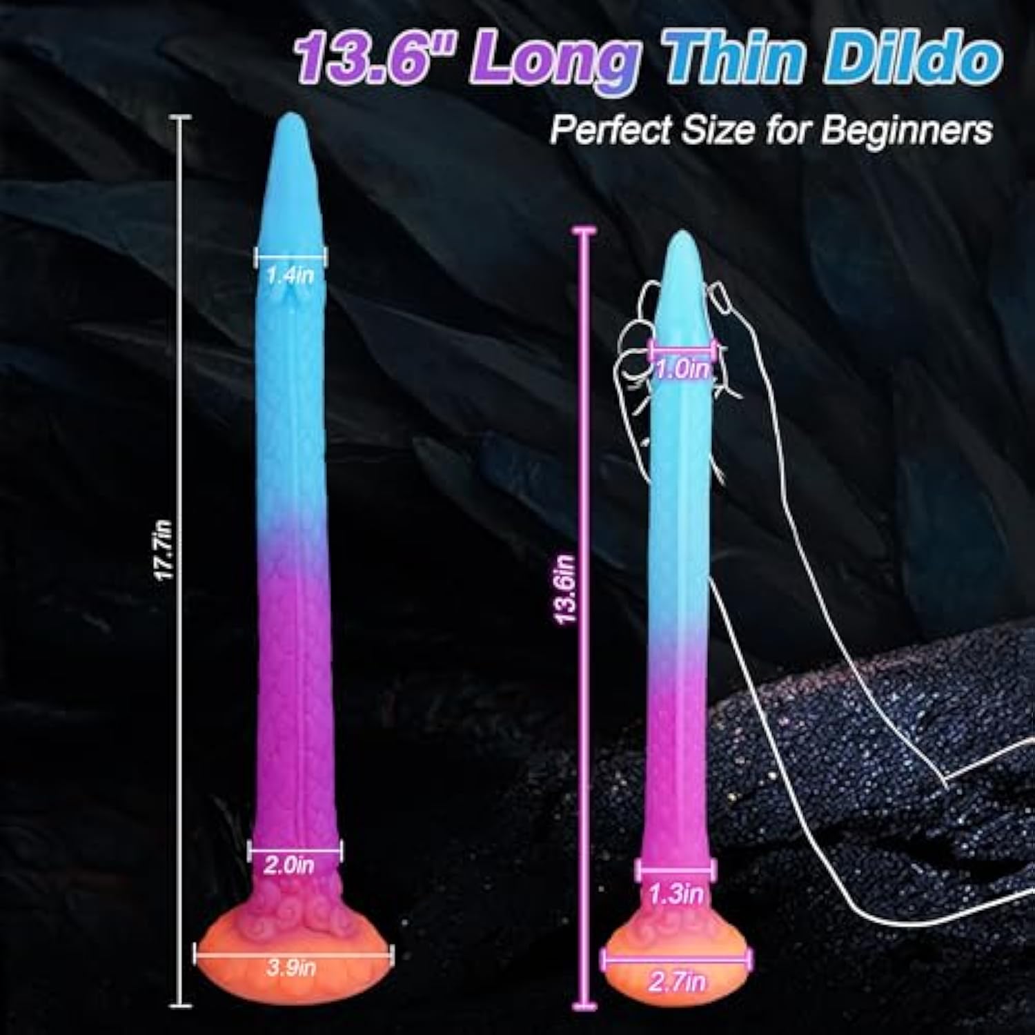 - A Thin Tentacle Dildo You Deserve: A Striking Blue-Purple Gradient Colorful Dildo For You! One Of The Standout Features Of This Long Slim Dildo Is Dildo'S Unique And Visually Appealing Blue-Purple Gradient Color. This Gradient Color Can Make The Fantasy