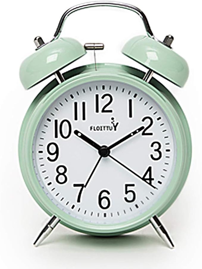 {Loud Alarm for Deep Sleepers) 4'' Twin Bell Alarm Clock with Backlight for Bedroom and Home Decoration(Green)