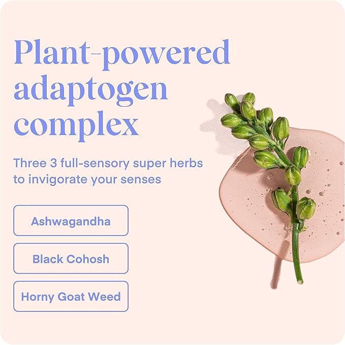 Plant-Powered Adaptogen Complex: Elevate your intimacy with a blend of ashwagandha, black cohosh, and horny goat weed to enhance pleasure naturally.