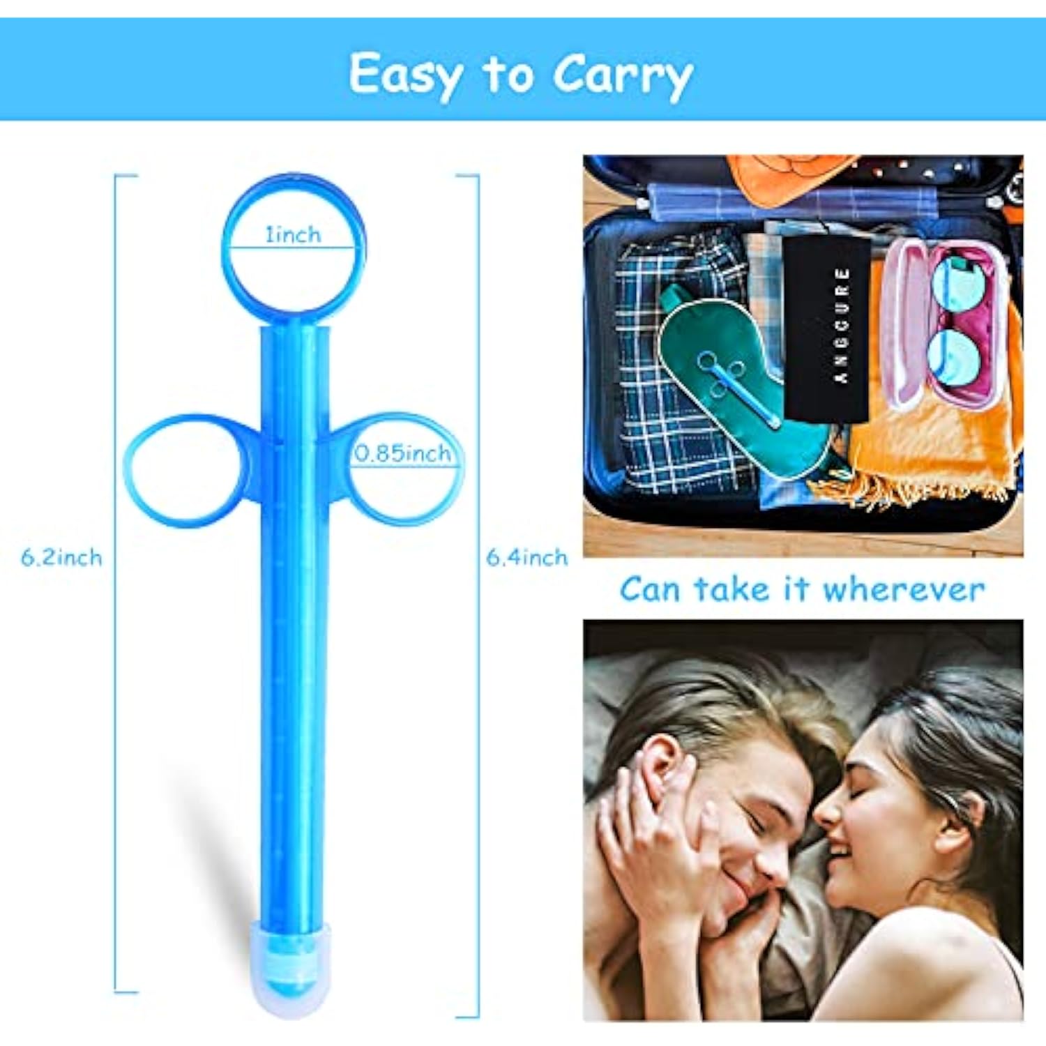 Lube Applicator For Women,Men,Female Lubricant Tube Shooter With 10Ml Scales [2 Pack+Storage Bag] Reusable, Smooth With Rounded Tip & Cap,Easy Use/Clean