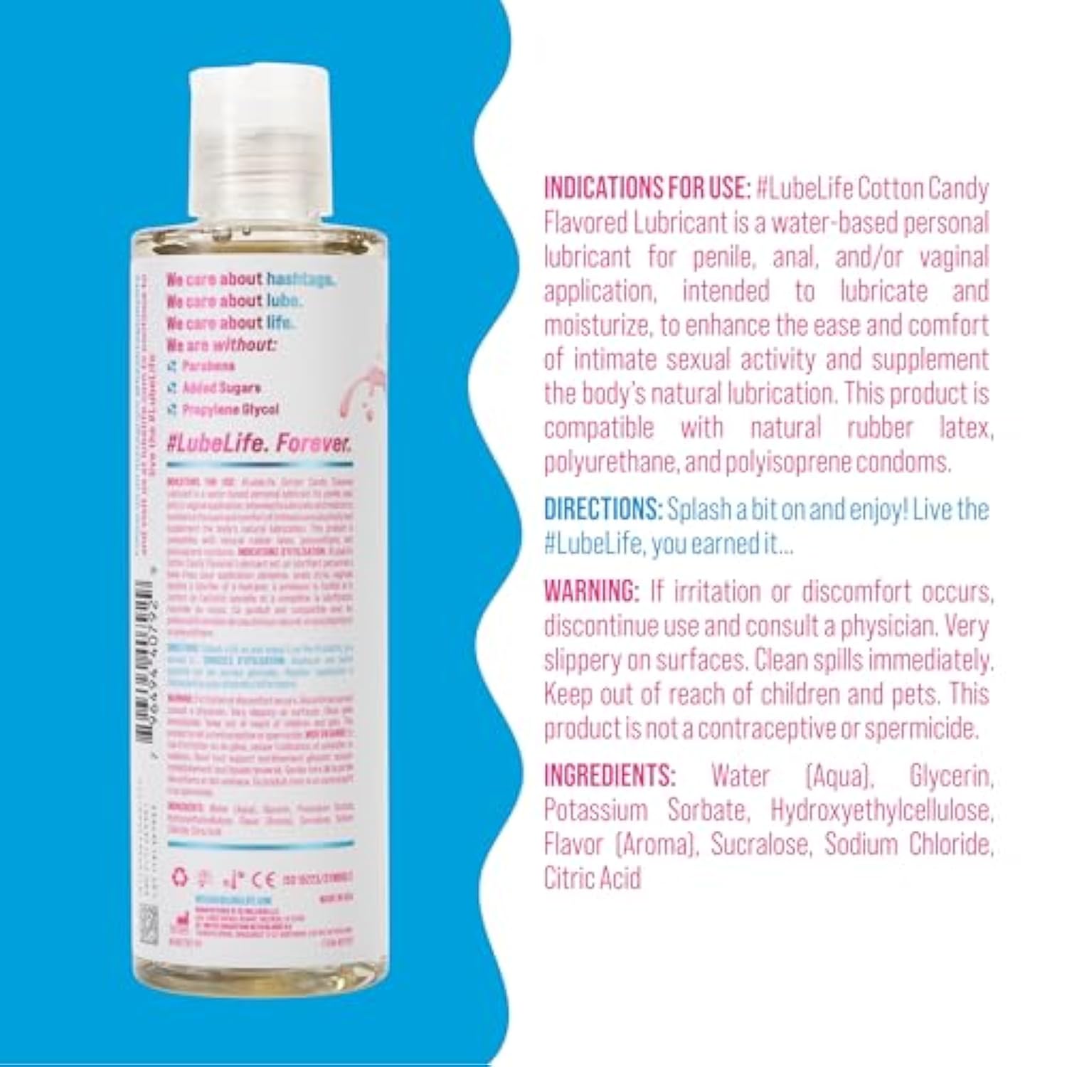 Lubelife Water-Based Cotton Candy Flavored Lubricant, Personal Lube For Men, Women And Couples, Made Without Added Sugar, 8 Fl Oz