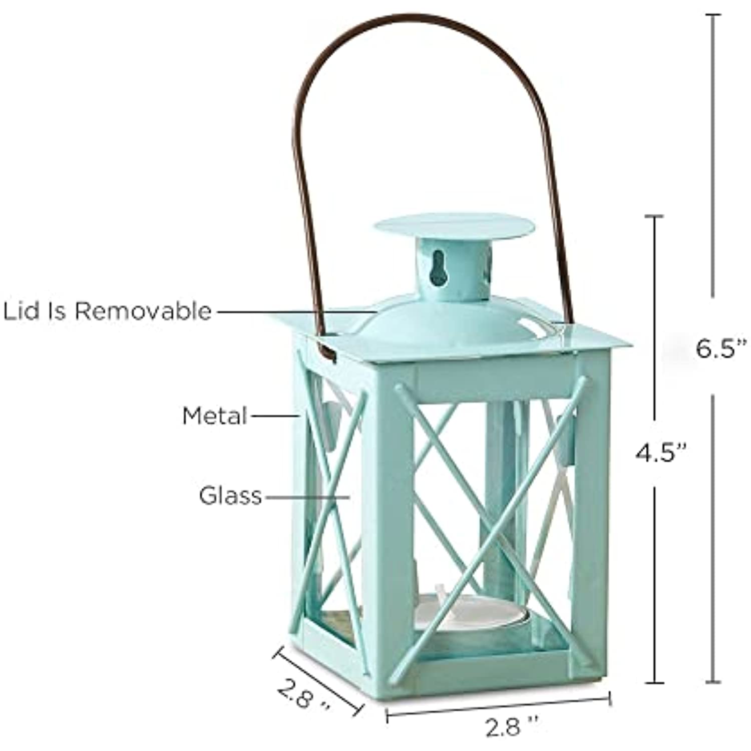 Luminous Metal Mini Lanterns, Vintage Teal Light Candle Holders, White