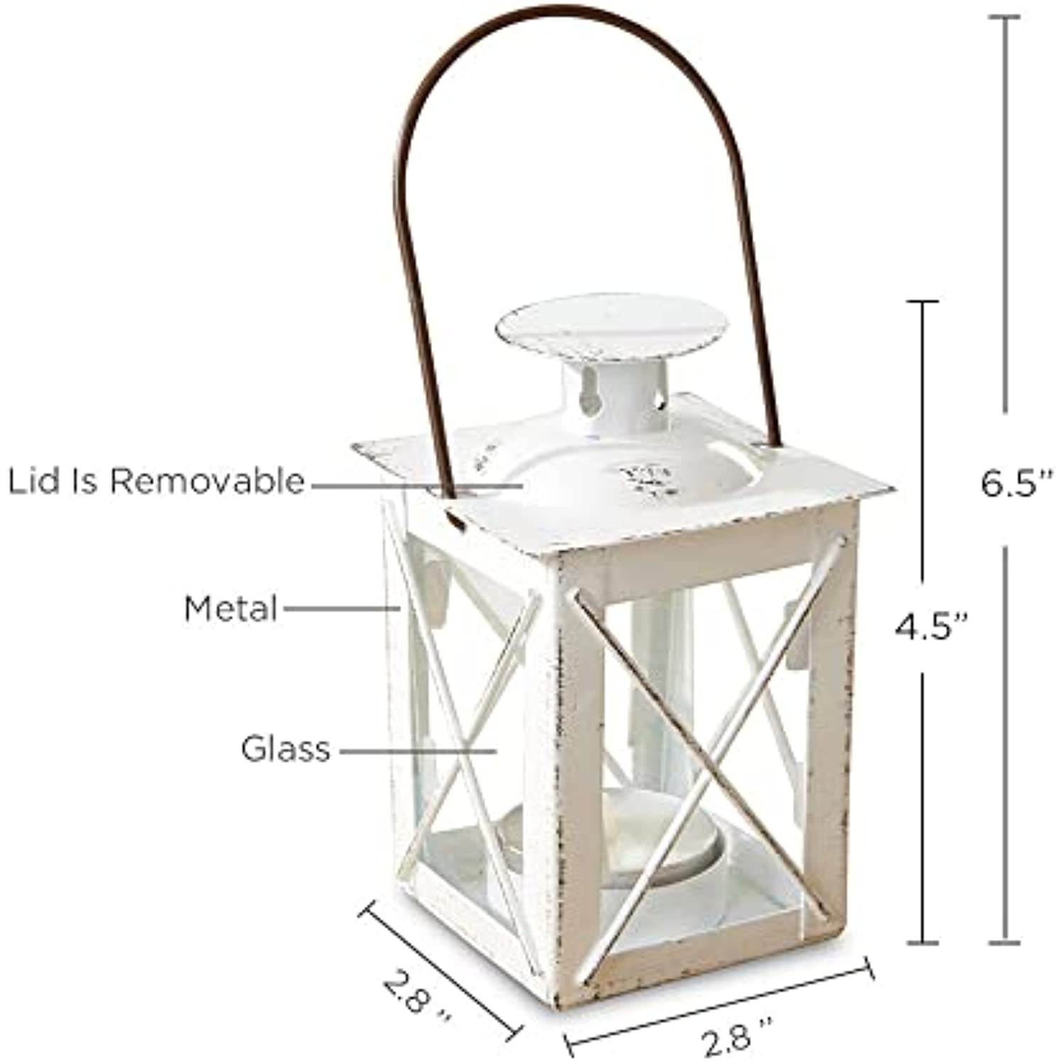 - TEA LIGHT HOLDERS - Each little white lantern holds one tea light candle (included)