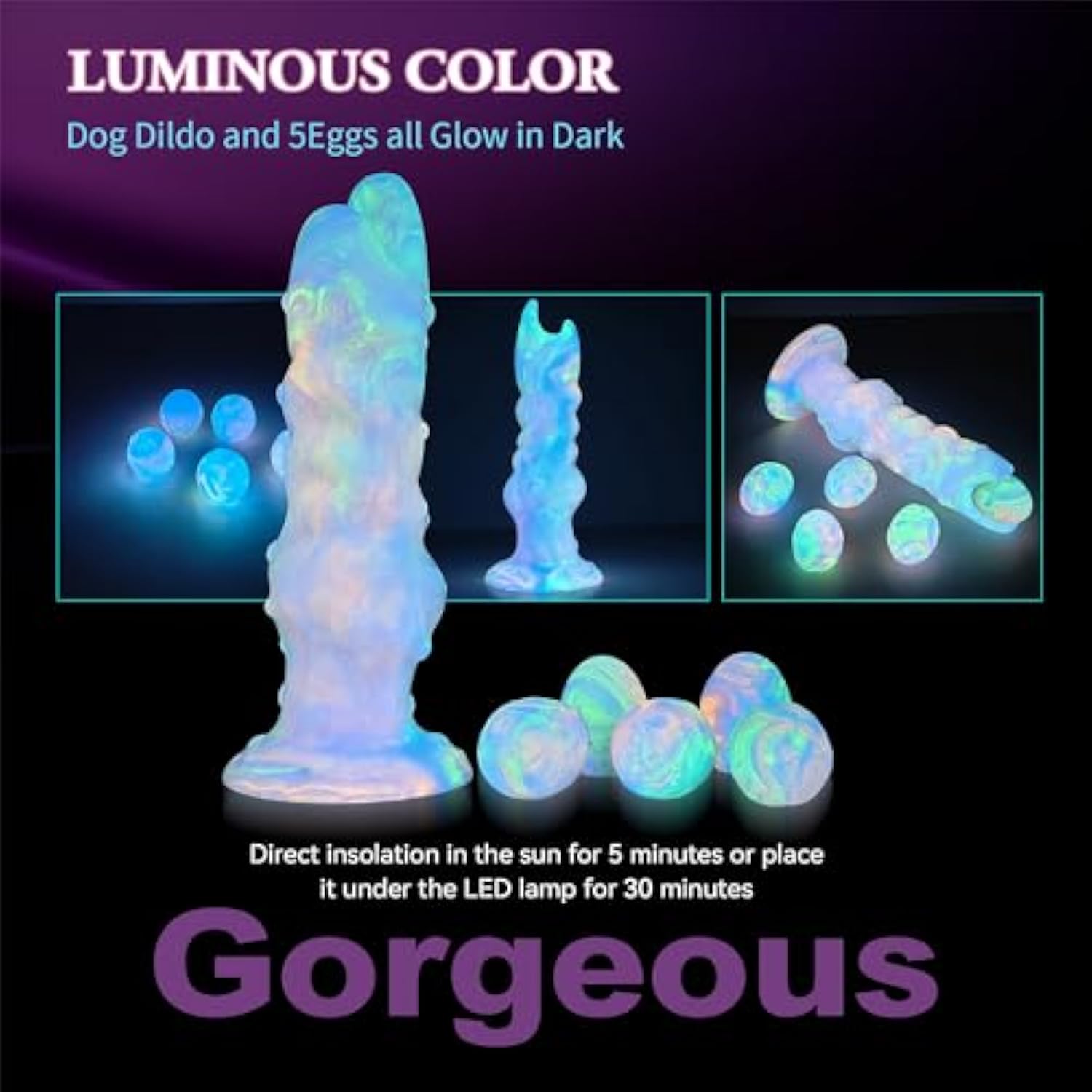 Luminous Monster Dildo Dog Ovipositor With 5 Eggs, 8Inch Pneumatic Inflatable Pump Dragon Dildos With 5 Balls Laying Eggs Sex Toys For Women And Couples