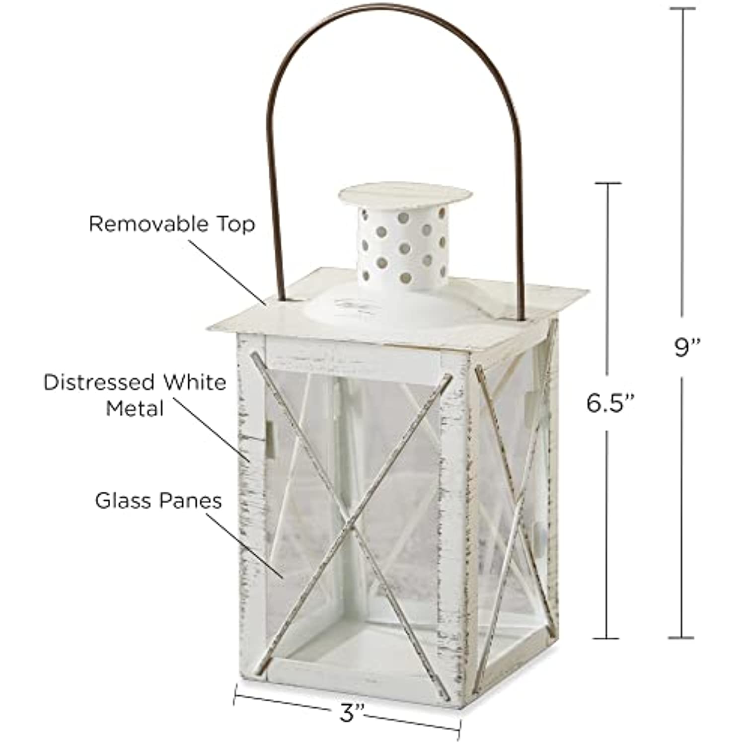 - ADORABLE LANTERNS - Light up your home, table settings or celebration decorations with elegant, vintage mini lanterns! This Luminous White Lantern Tea Light Holder is great for wedding aisle décor to light your way. This farmhouse lamp is gorgeous with a shabby chic white distressed design and can hold magical tea lights for your home or party design.