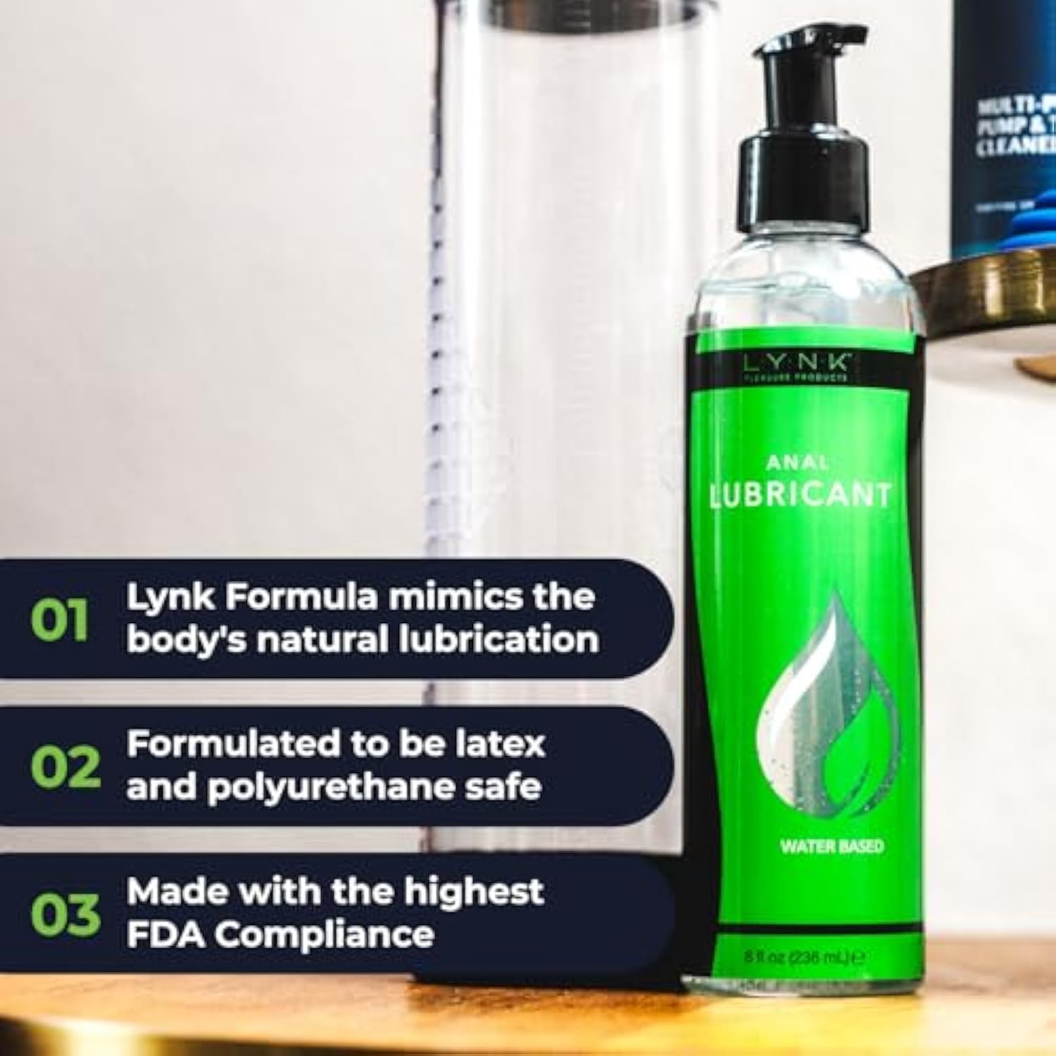 Lynk Water Based Personal Lubricant, Lasts Long Easy To Clean, Lubricant For Privacy W/Latex & Silicone, Men Women Couples Solo Play, 8 Oz