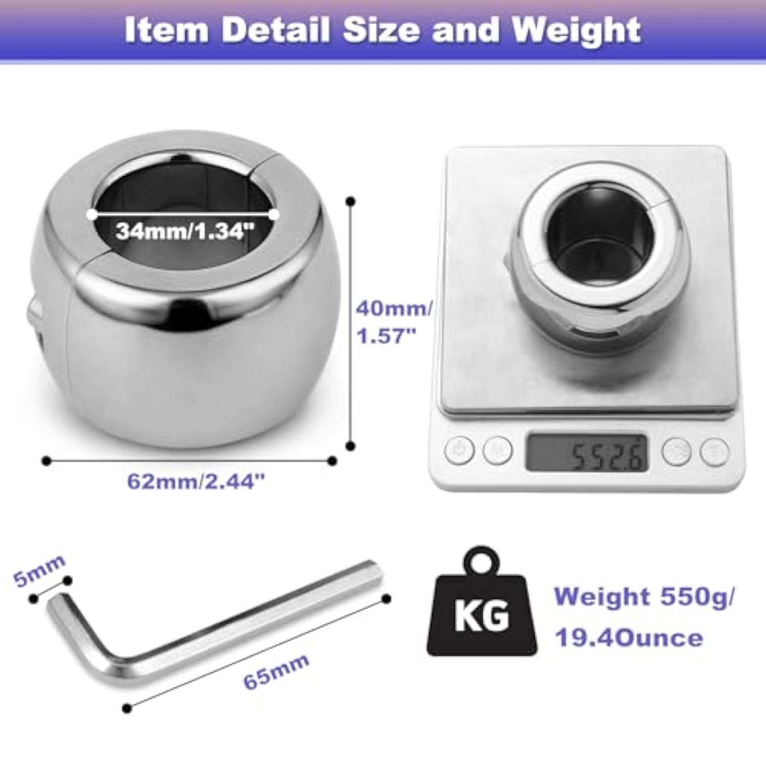 | Size And Weight:Inner Diameter 34Mm/1.34", Width 62Mm/2.44", Tall 40Mm/1.57". Weight About 550G/19.4Ounce | | It'S A Rounded Ball With 2Pcs Screws Hole To Make It Easier To Attach. So That Reduce Slippage And Provide A Great Comfort Level. Get An Amazing Weighted Feel | | Made Of 304 Grade Stainless Steel Material, Mirror Polishing And Workmanship, Looks Beautiful | | Round And Smooth Edge, Wear Comfortable All Day | | Heavy Weight Stretching Fun, Help You Enjoy Unforgettable And Unparalleled Pleasure. | |