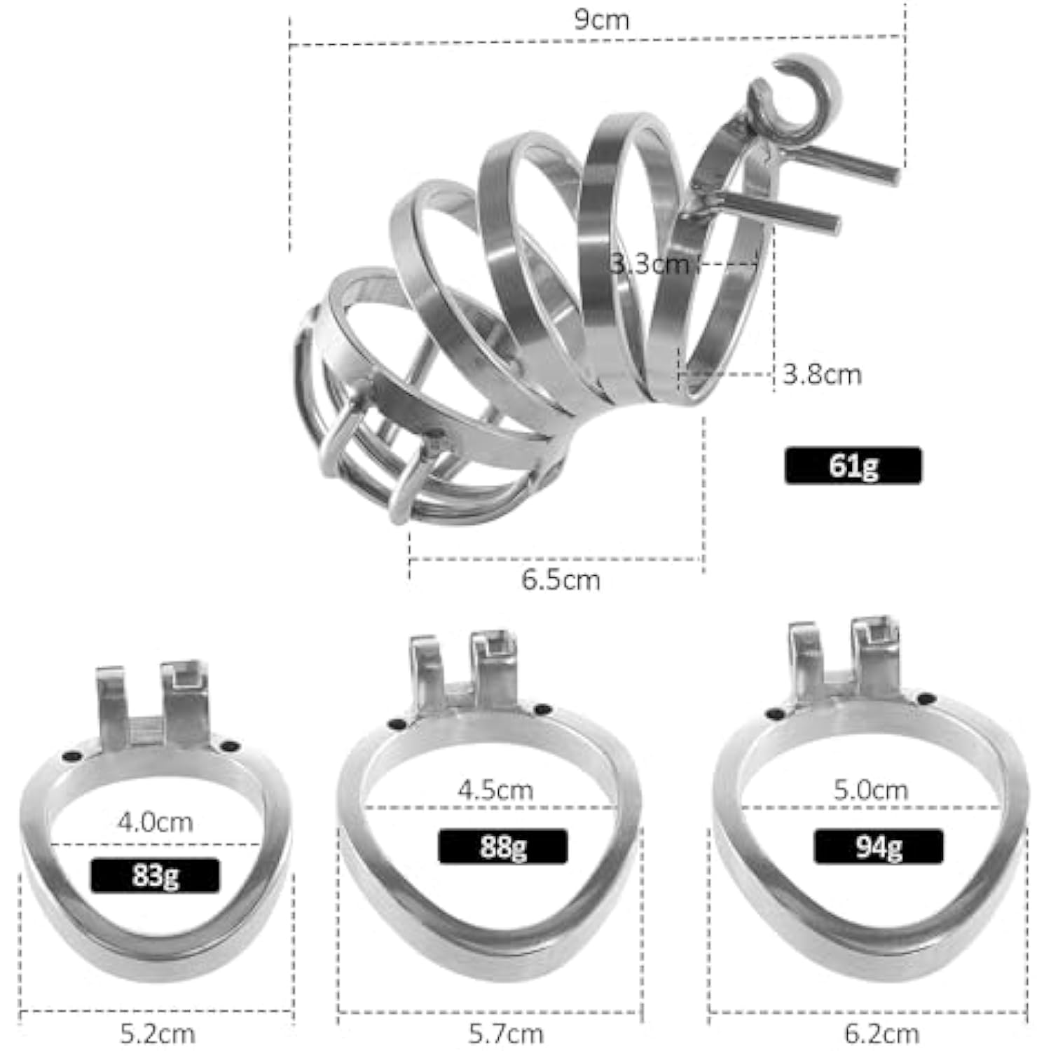 - Portable Device Locked Cage With 2 Different Sizes Of Cock Rings For