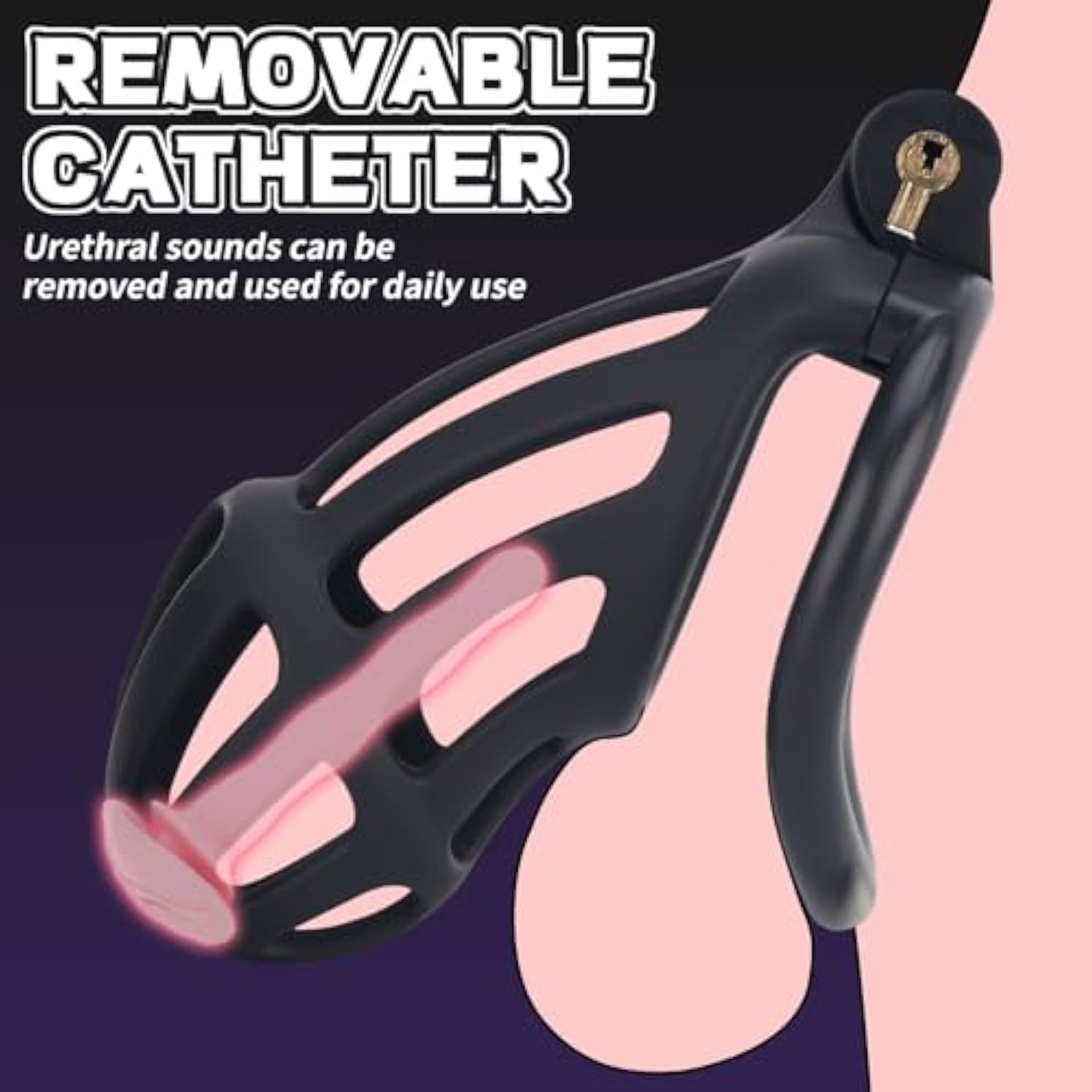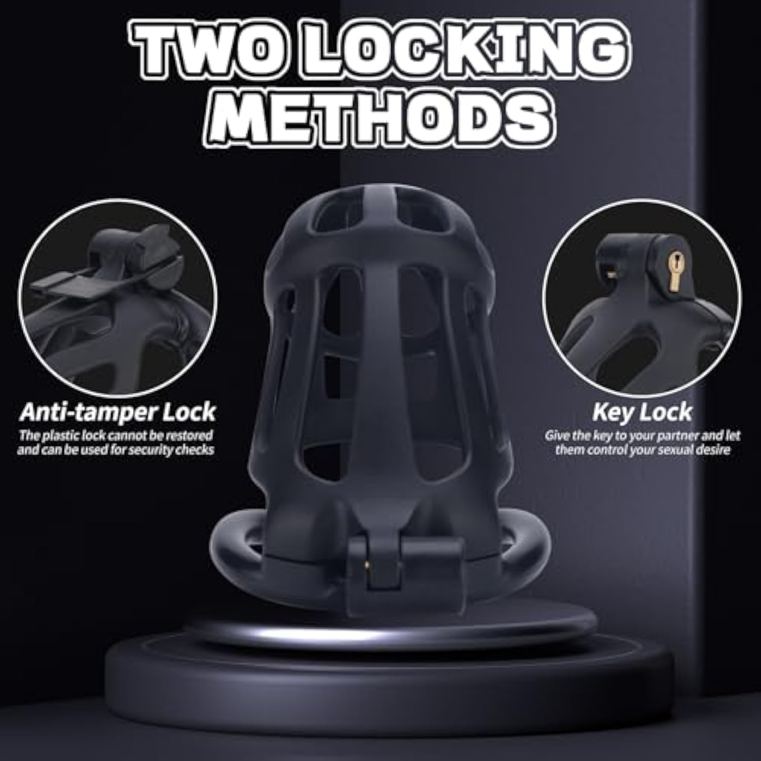 Male Chastity Cage, Large Chastity Device With 5 Sizes Rings And Invisible Lock For Man Penis Exercise Bondage Gear & Accessories Lightweight Adult Sex Toys (Large Size - Black)
