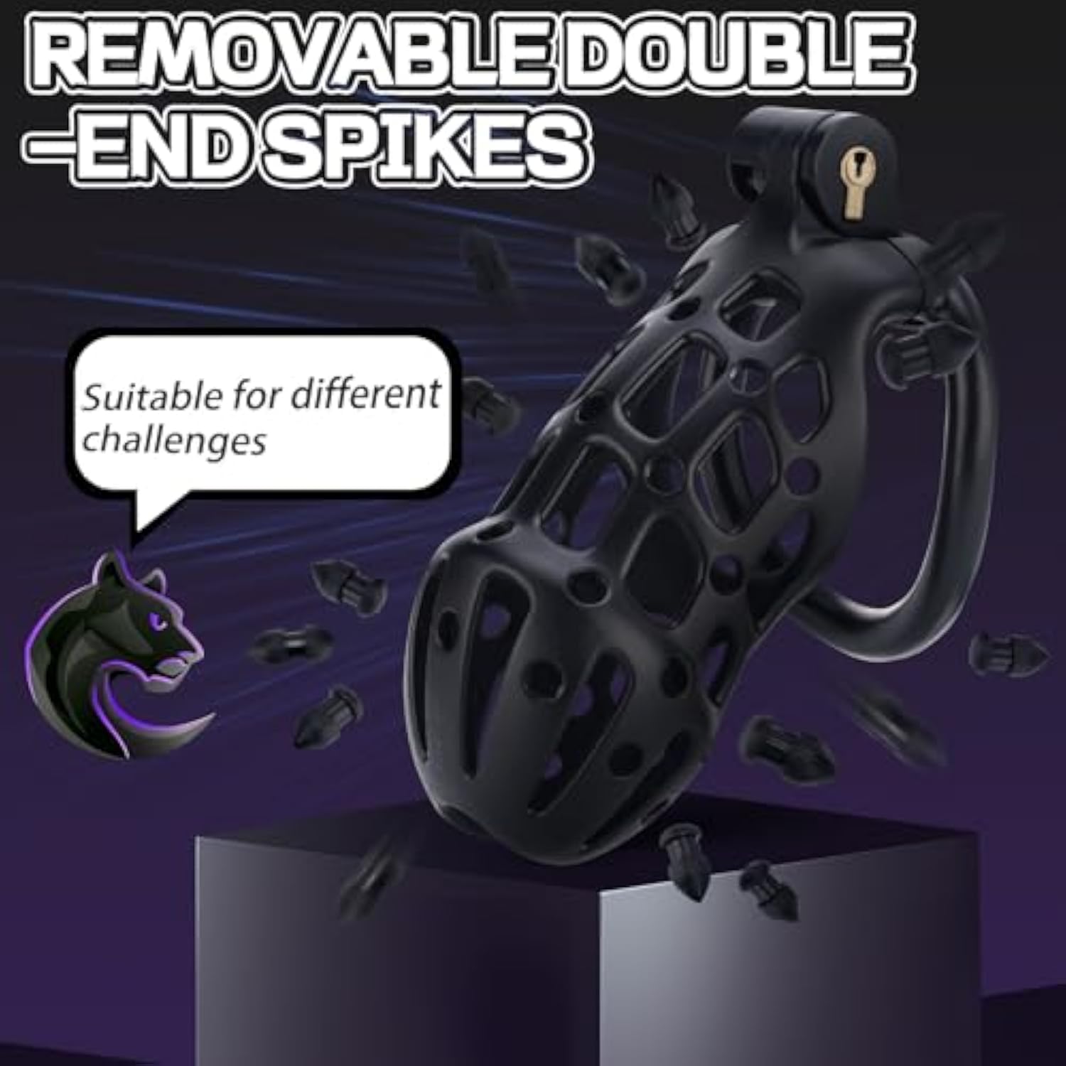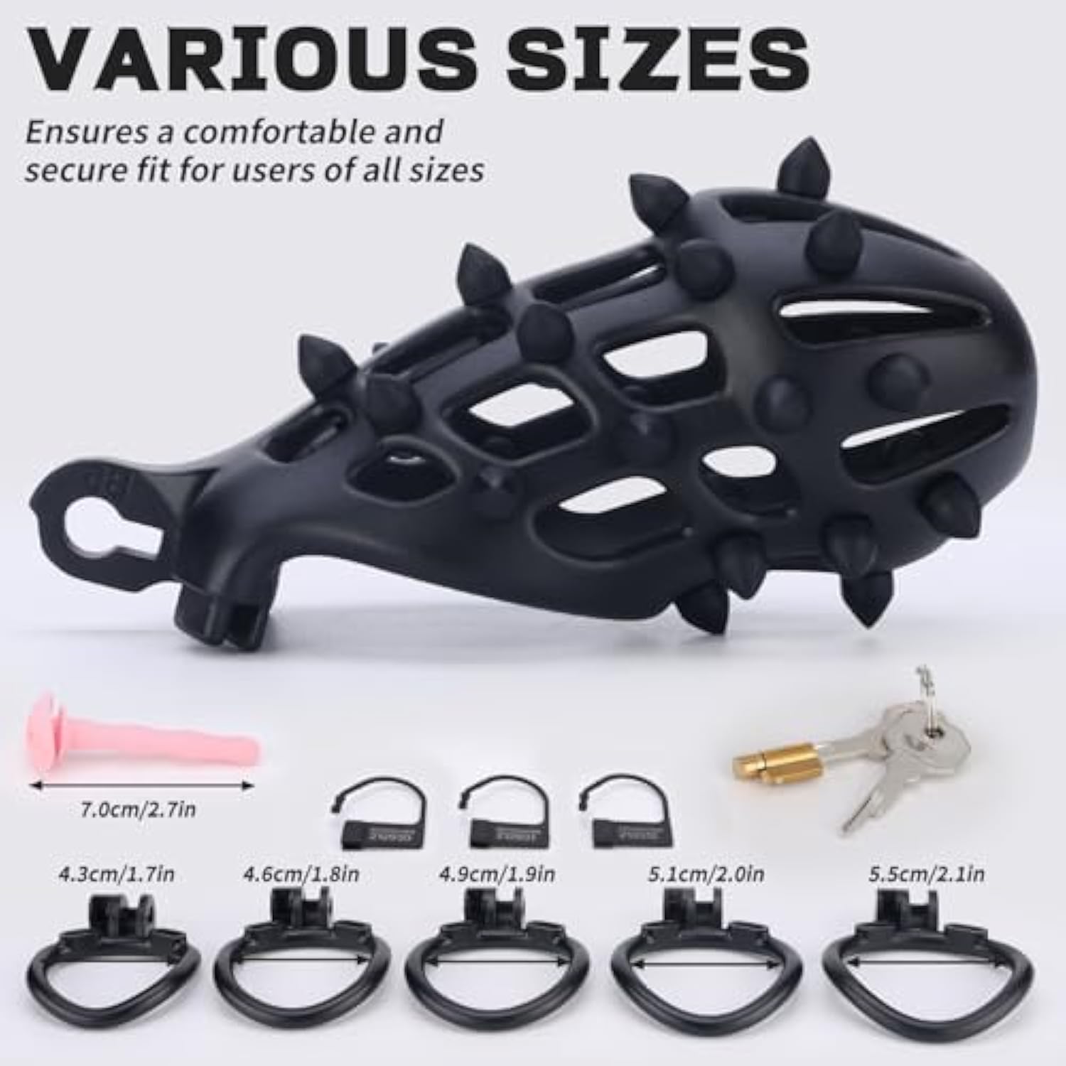 Male Chastity Cage, Large Chastity Device With 5 Sizes Rings And Invisible Lock For Man Penis Exercise Bondage Gear & Accessories Lightweight Adult Sex Toys(5D-Black)
