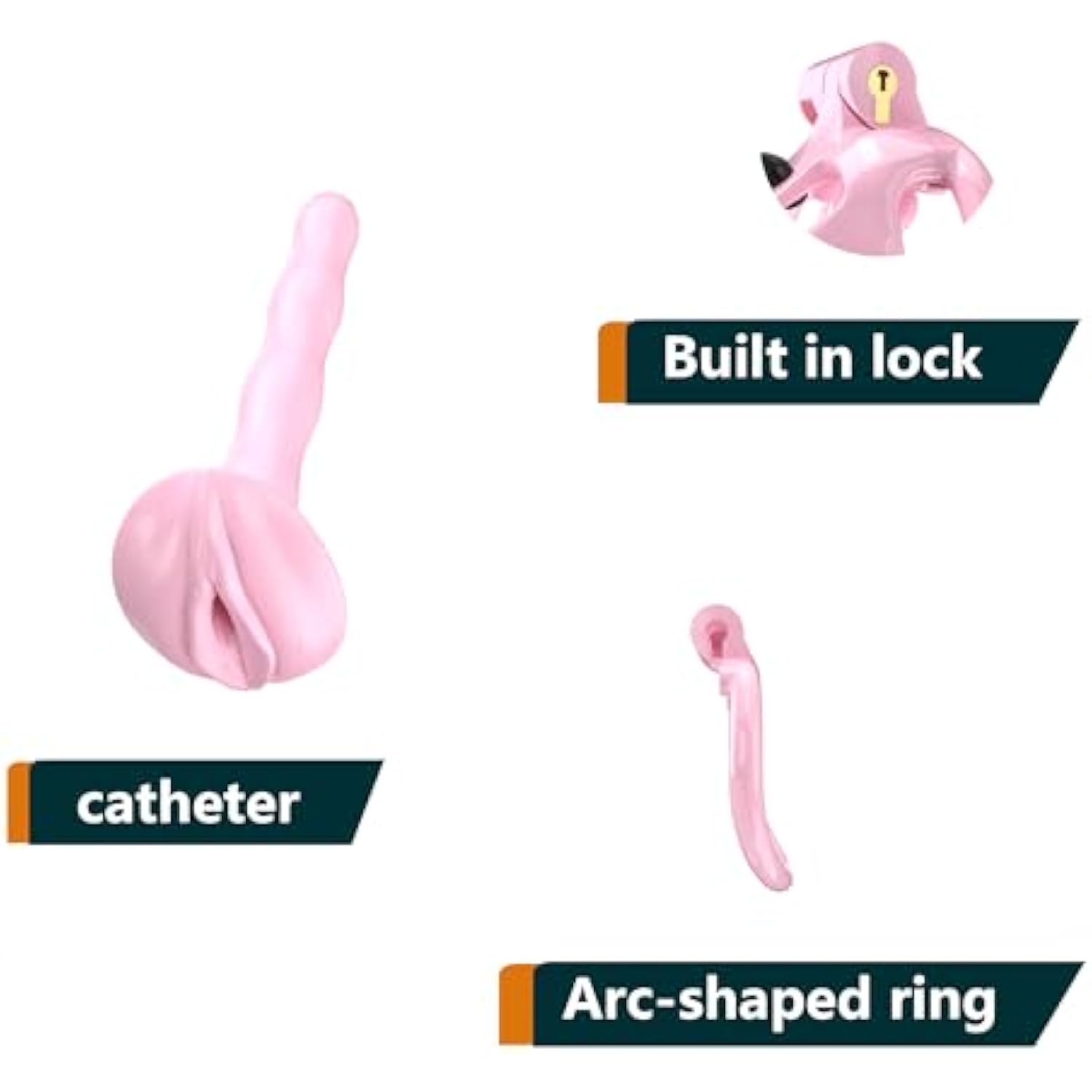 Male Chastity Cage,Lightweight Cock Cage,Resin Chastity Devices,Adult Sex Toy For Men, Locked Key,5 Sizes Rings Included (Pink, Standard)
