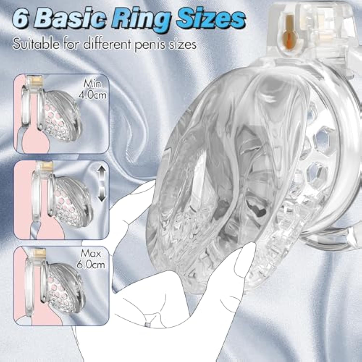 | ?Satisfy Your Desire To Control??Every Relationship Needs A Touch Of Challenge And Control. Are You Longing To Explore Desire More Deeply In Your Connection Do You Wish To Create Anticipation With Every Intimate Encounter This Male Chastity Device Is The Unspoken Pact Between You And Your Partner—A Perfect Blend Of Desire, Trust, And Passion. | | ?Simulation Appearance??The Appearance Of The Penis Cage Is Designed In The Shape Of A Clitoris, The Penis Cage Part Is Made Of Super Tough Abs Material, And The Clitoris Part Is Made Of Soft Tpe Material, The Realistic Appearance And Tactile Sensation Allows You To Experience An Unparalleled Feeling. | | ?Six Sizes, A Perfect Fit For Your Needs??Everyone’S Definition Of Comfort Is Unique. We’Ve Designed This Device With Six Interchangeable Rings To Let You Customize The Fit According To Your Preferences. Whether You Desire A Tighter Fit Or Prefer More Freedom, This Chastity Device Adjusts To Give You The Perfect Balance Of Control And Comfort, With Every Wear Full Of Anticipation And Satisfaction | | ?Hollow Out Design?: Designed With Breathability In Mind, Our Chasity Cage Incorporates A Hollow Out Design. This Allows For Proper Airflow, Ensuring Your Penis Can Breathe Freely And Remain Comfortable Throughout Extended Wear. Additionally, The Tip Of The Cage Includes A Urination Hole, Enabling Normal Urination Even While Restrained. | | ?Safety And Privacy, Trust In Every Moment??The Precision-Engineered Mechanical Key Lock Ensures Your Privacy And Security Are Never Compromised. Every Unlocking Is Like A Ritual—Filled With Mystery And Significance, Strengthening The Trust And Emotional Bond Between You And Your Partner. This Is Not Just A Product; It’S A Commitment Within Your Relationship. | |