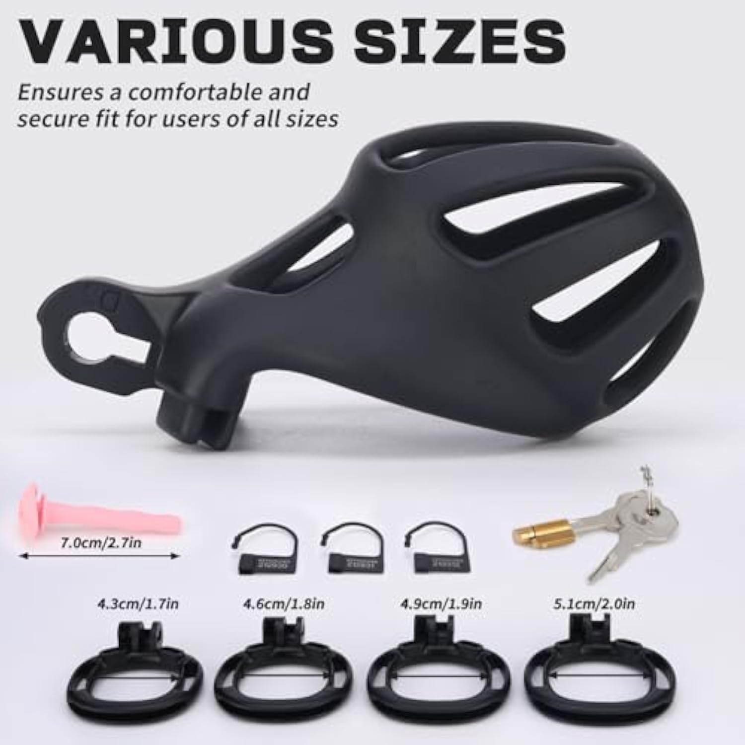 | The Satisfaction Of Filling The Gap: Our Cock Cage Provides The Ultimate Experience Of Fulfilling Your Desires By Restricting The Full Congestion Of Your Sexual Organs. Experience A New Level Of Intense Pleasure When Released. | | Include 5 Cuff Rings: With The Inclusion Of Three Cuff Rings, Our Male Chastity Ensures A Comfortable And Secure Fit For Users Of All Sizes. | | Innovative 3D Printed Design: Our Chastity Belt Features A Cutting-Edge 3D Printed Design That Perfectly Conforms To The Natural Curve Of The Penis. The Surface Is Smooth And Lightweight, Providing Exceptional Comfort During Wear. | | Hollow Out Design: Designed With Breathability In Mind, Our Chasity Cage Incorporates A Hollow Out Design. This Allows For Proper Airflow, Ensuring Your Penis Can Breathe Freely And Remain Comfortable Throughout Extended Wear. Additionally, The Tip Of The Cage Includes A Urination Hole, Enabling Normal Urination Even While Restrained. | | Upgraded Hidden Lock : The Penis Cage Is Equipped With A Sturdy And Durable Hidden Lock Mechanism. Hand Over The Keys To Your Partner And Grant Them The Power To Control Your Erotic Experiences. Explore The Depths Of Pleasure And Submission With This Chastity Cage For Men. | |