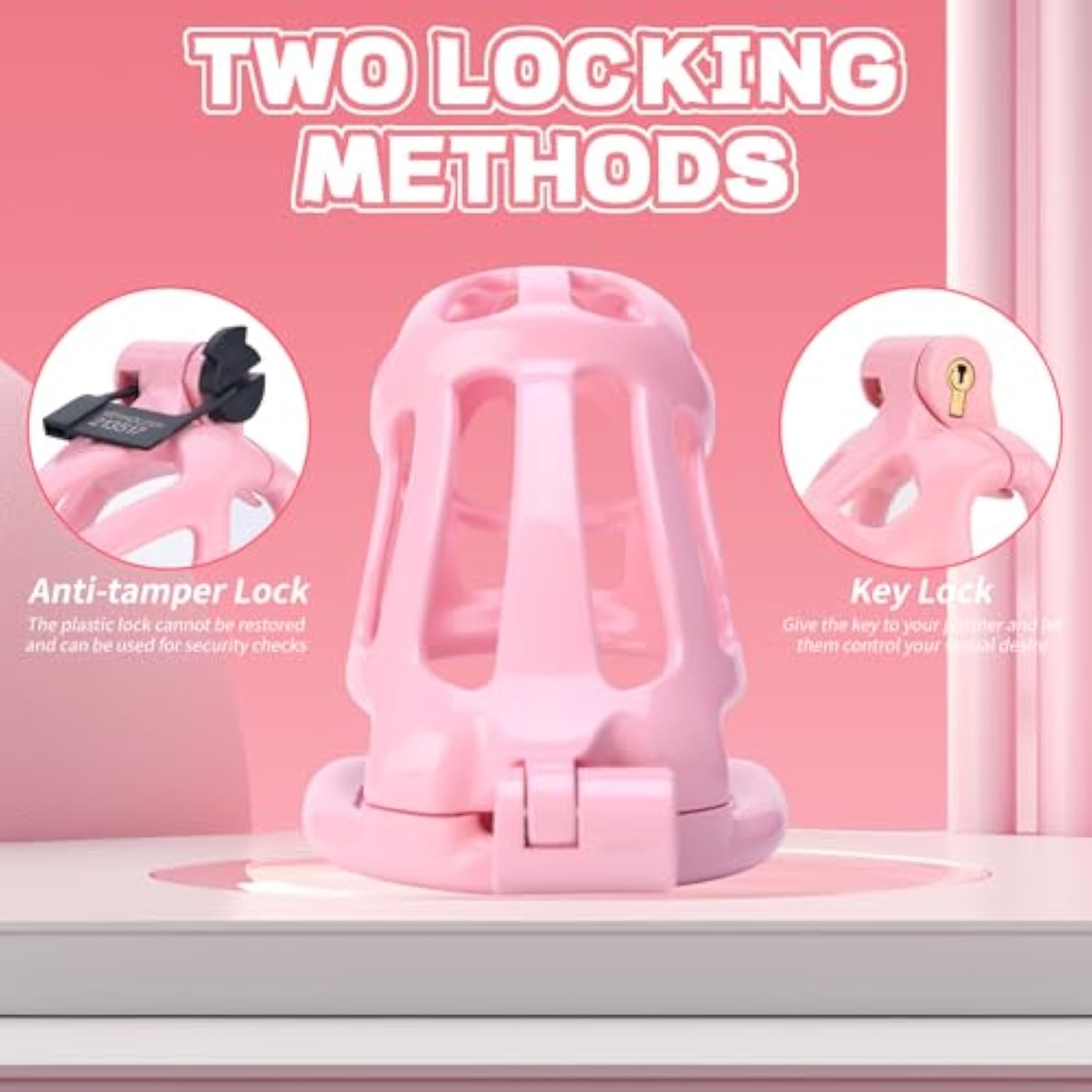 Male Chastity Cage With Belt, Chastity Device With 5 Sizes Rings And Invisible Lock For Man Penis Exercise Bondage Gear & Accessories Lightweight Adult Sex Toys(2D-Pink)