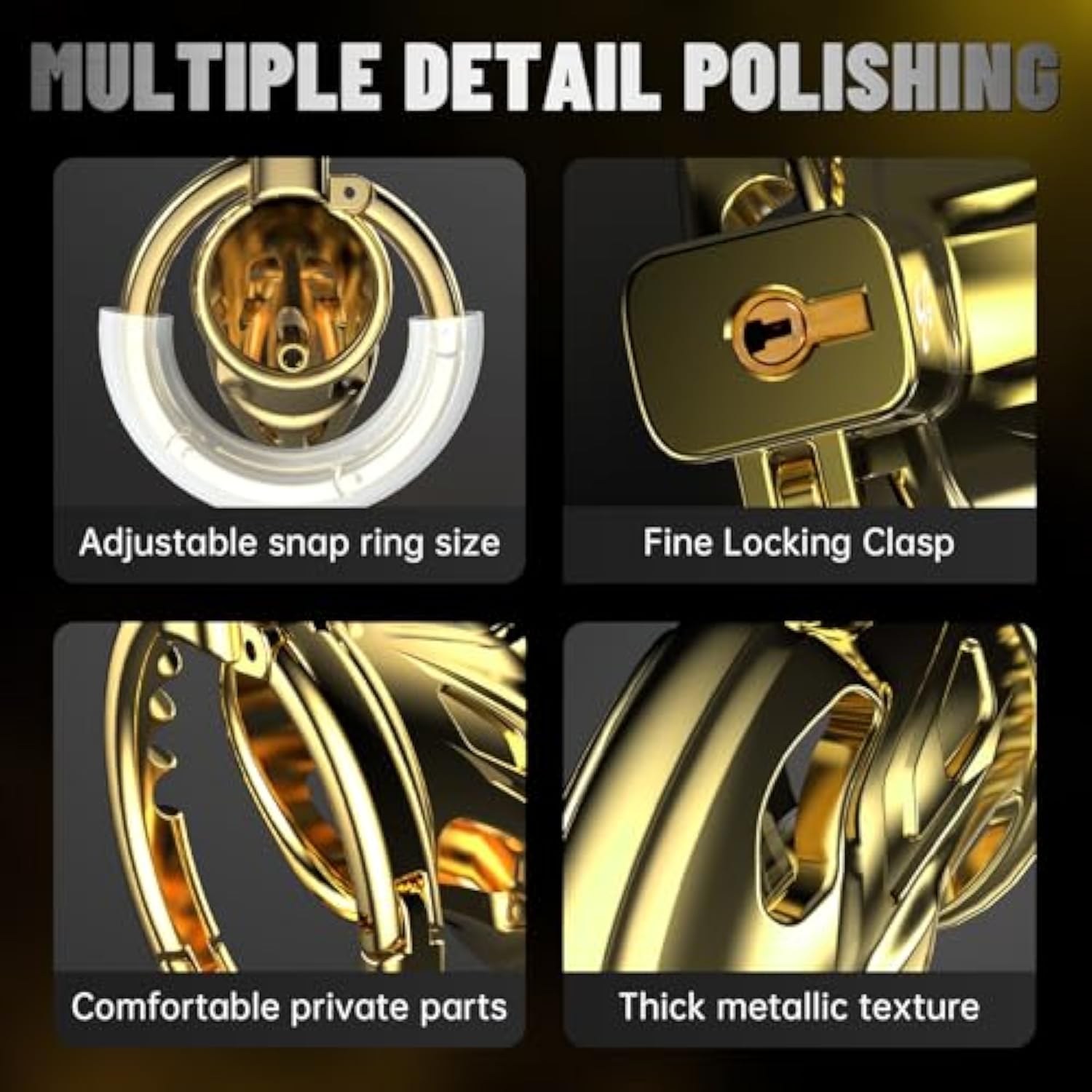Male Chastity Cage, Zinc Alloy Chastity Device, Integrated Adjustable Ring Cock Cage Lightweight Chastity Cage With Keys Adult Sex Toy For Men (Gold)