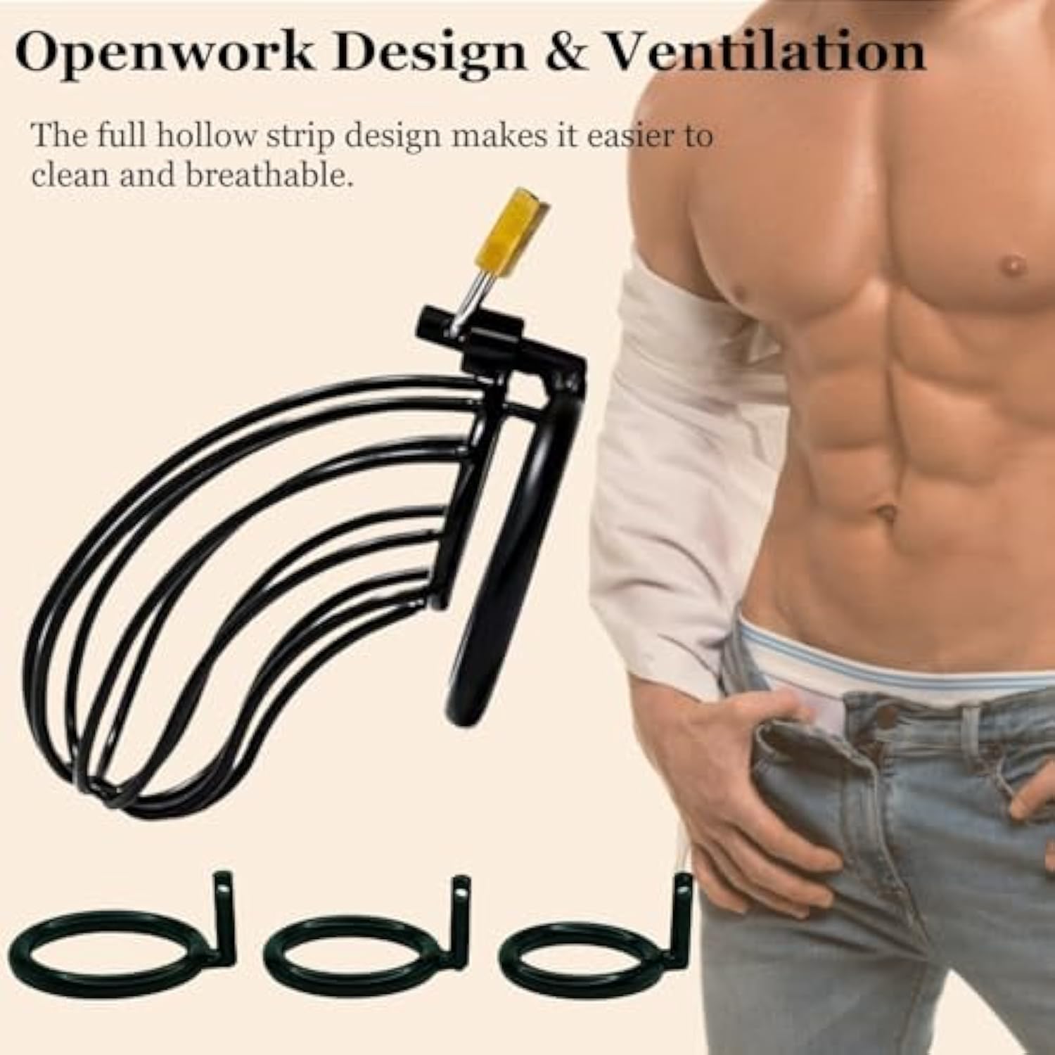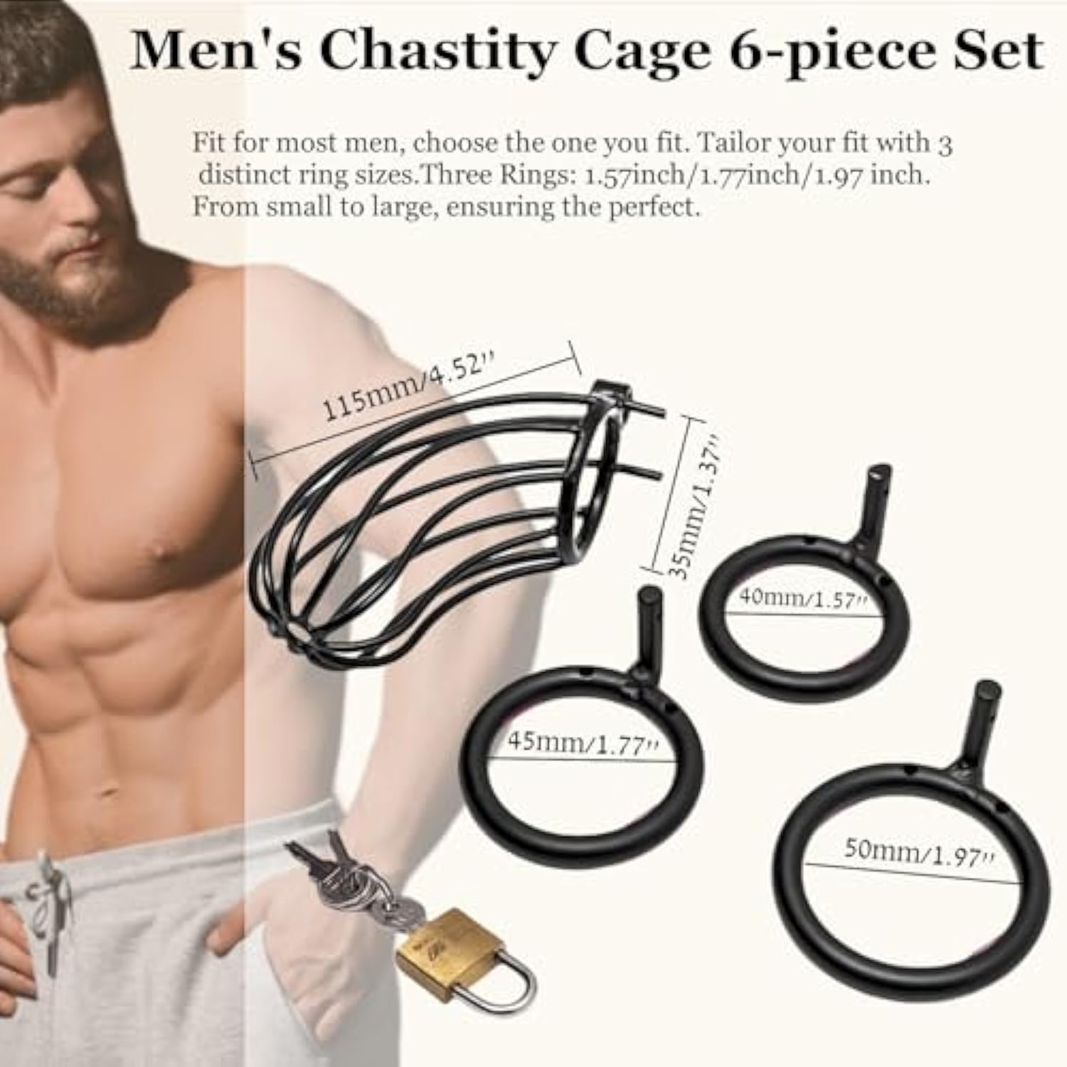 - Multiple 3 Different Sizes Rings - Cock Cage Kit Is Attached With 3 Cuff Rings With Diameter Of 2"/5.08Cm,1.8"/.57Cm,1.6"/4.06Cm To Meet Different Perfect Fit.This Is A Small Chastity Cage,The Cage Itself Reduces The Size And Is Suitable For Most Men Of