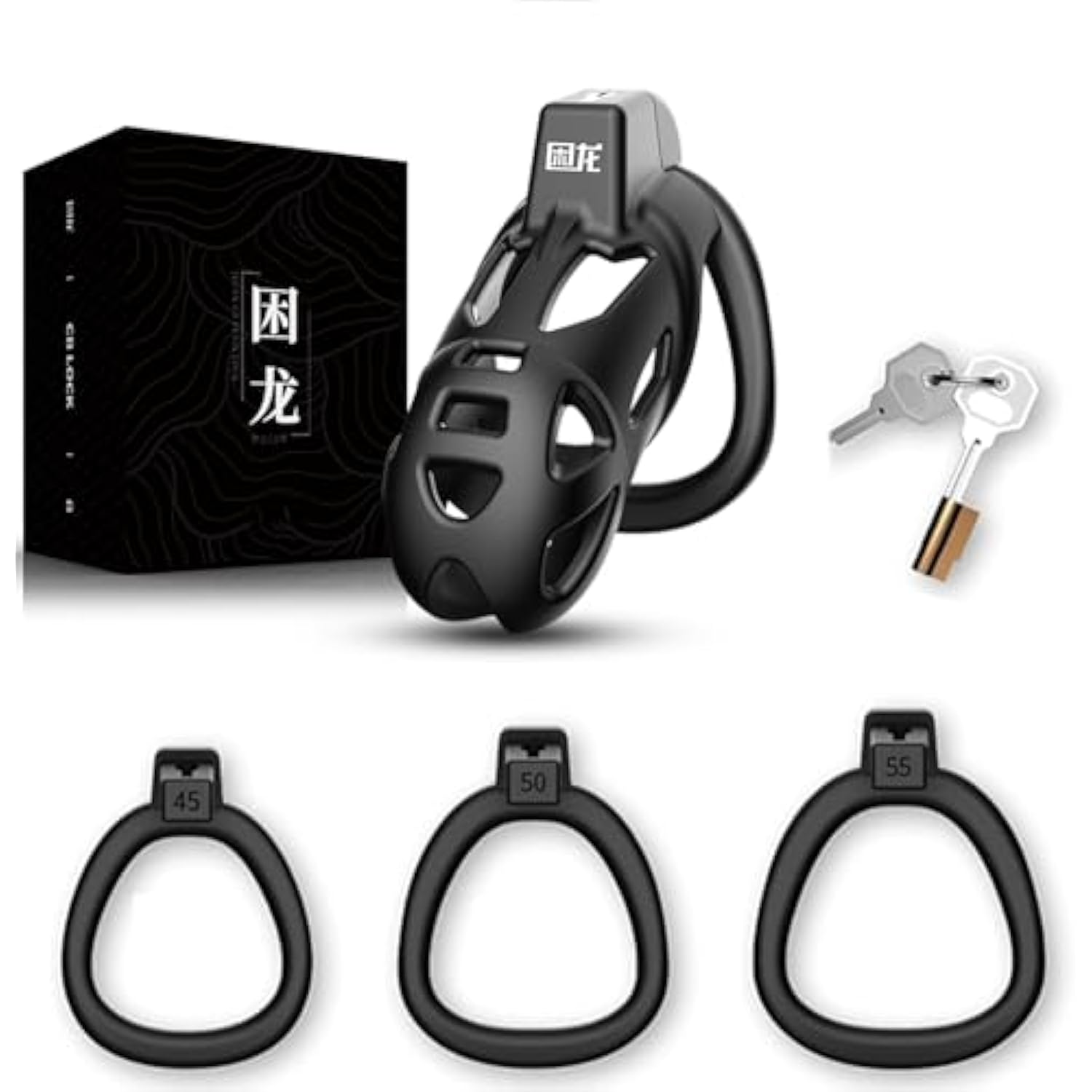 Male Cock Cage Chastity Device With 3 Rings For Men, 4 Different Sizes Of Male Chastity Cage Device With Key Adult Sex Toy For Men - S